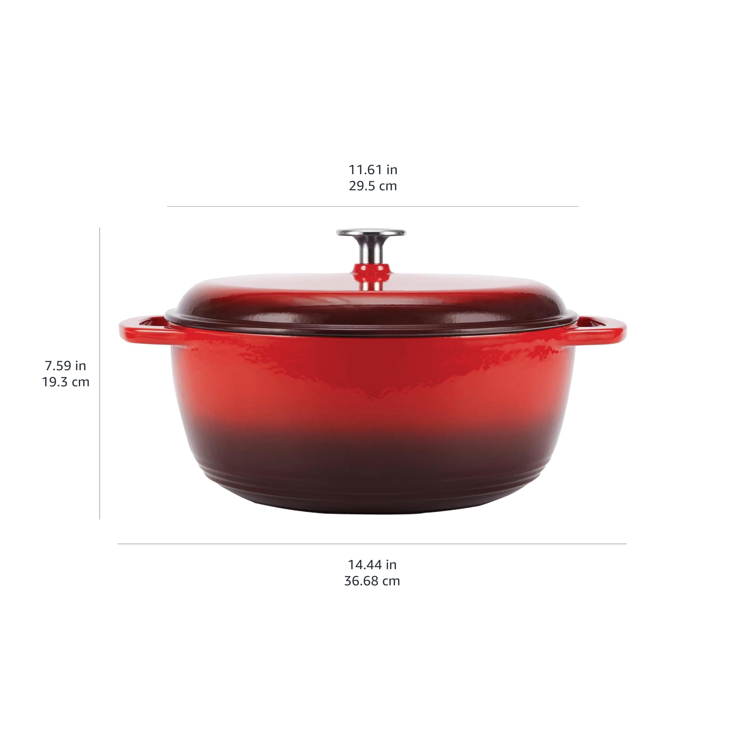 Amazon Basics Rund Bräter Schmortopf aus emailliertem Gusseisen, 6.9 l, Rot