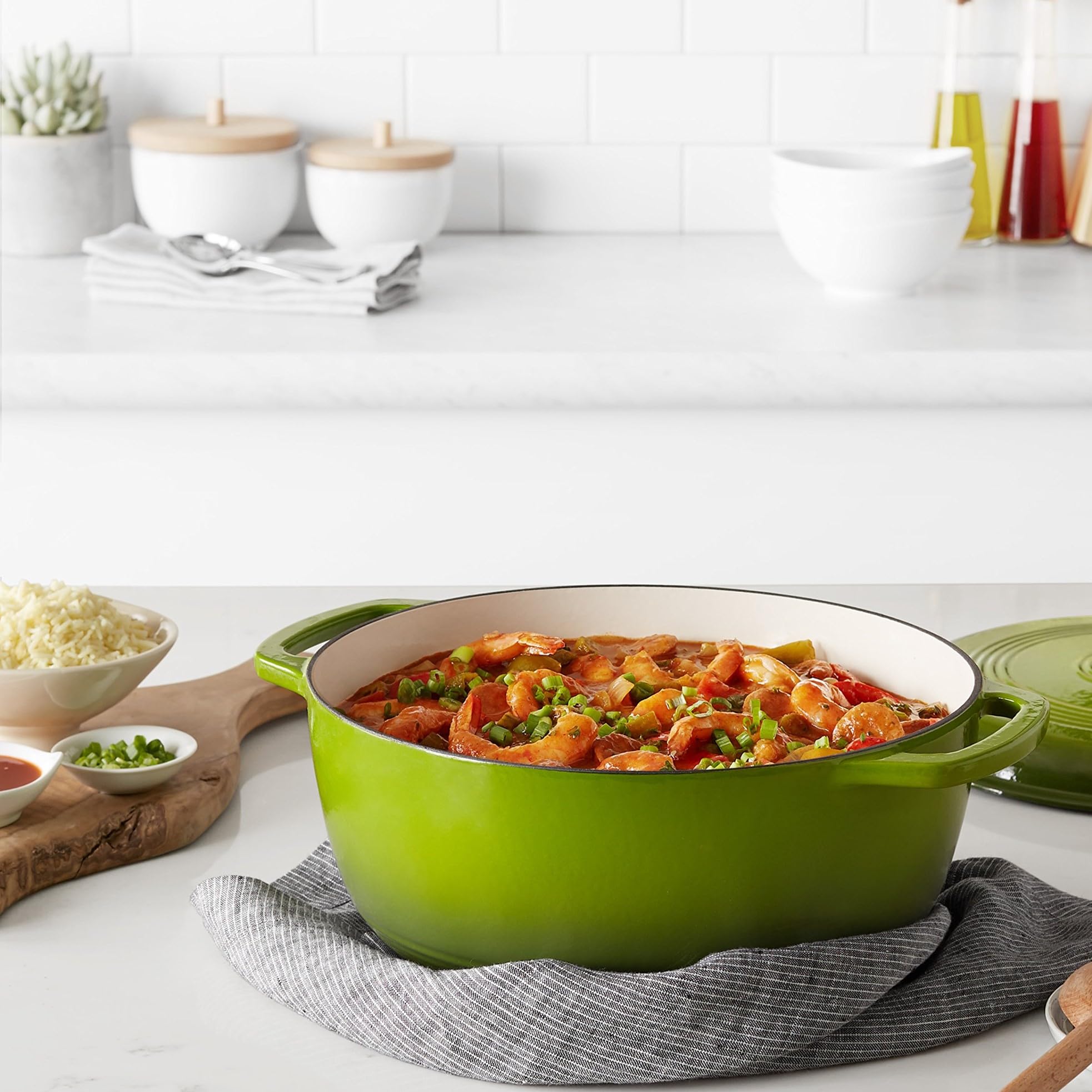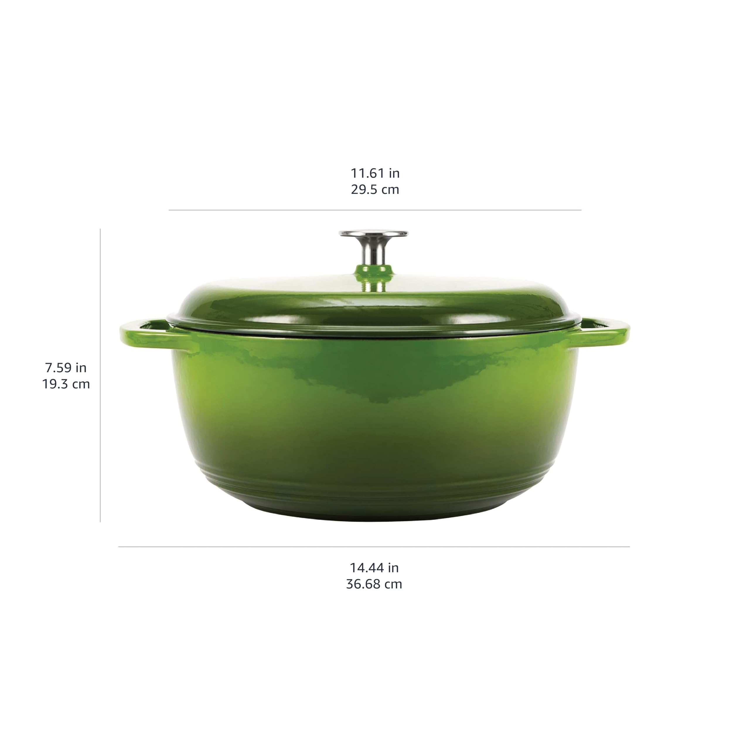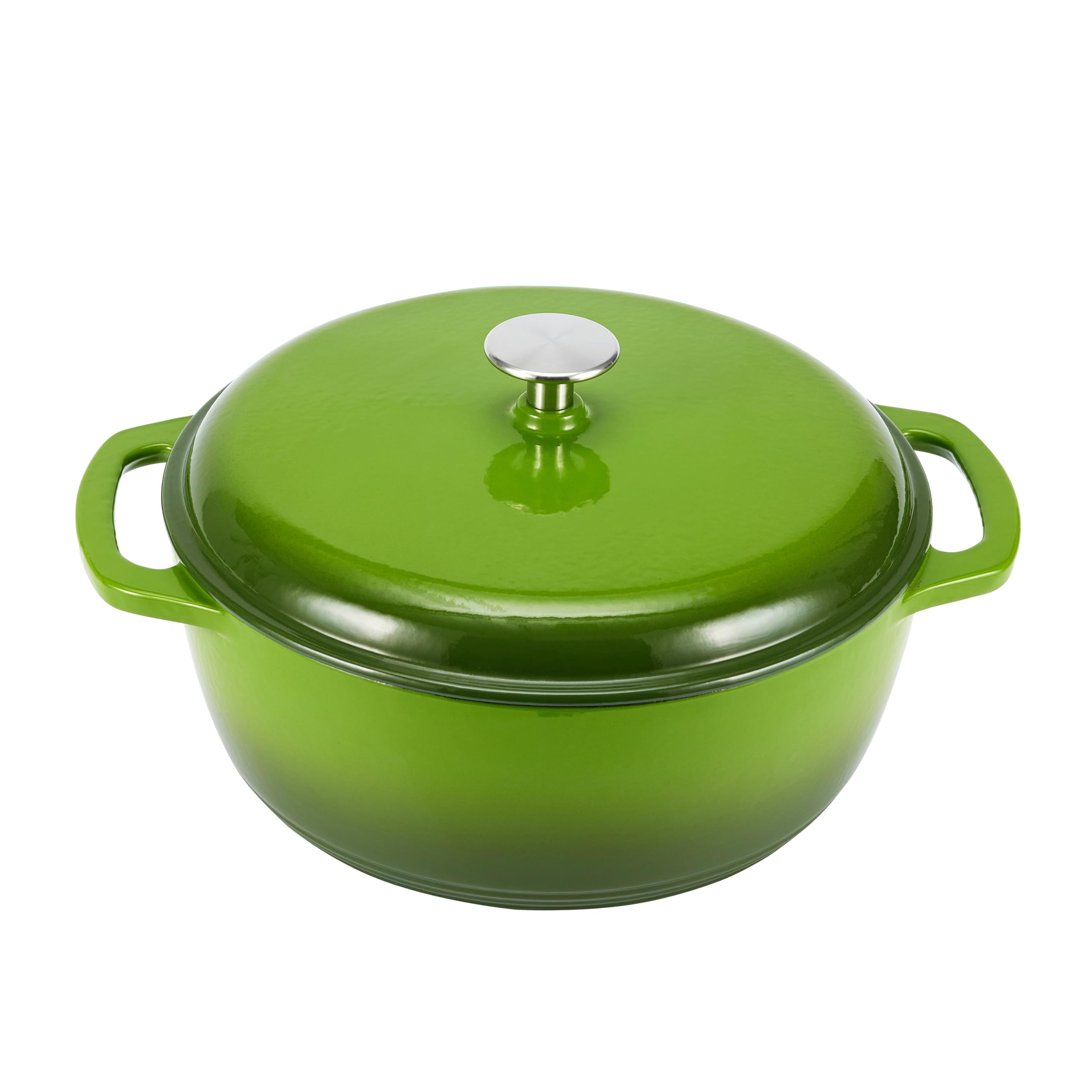 Amazon Basics Rund Schmortopf aus emailliertem Gusseisen, mit Deckel, 6.9 L, Grün