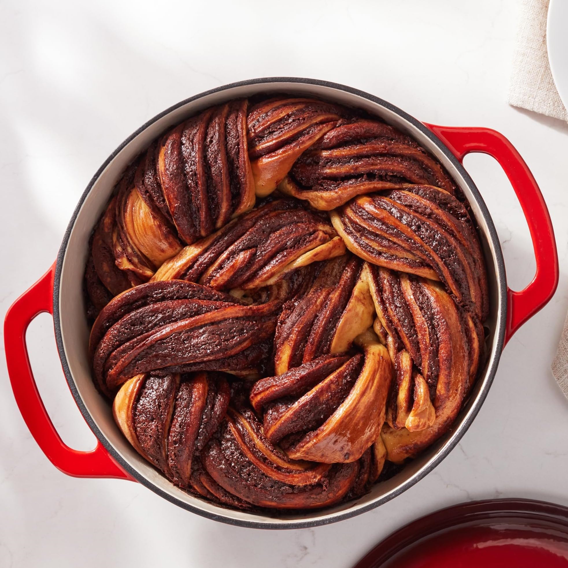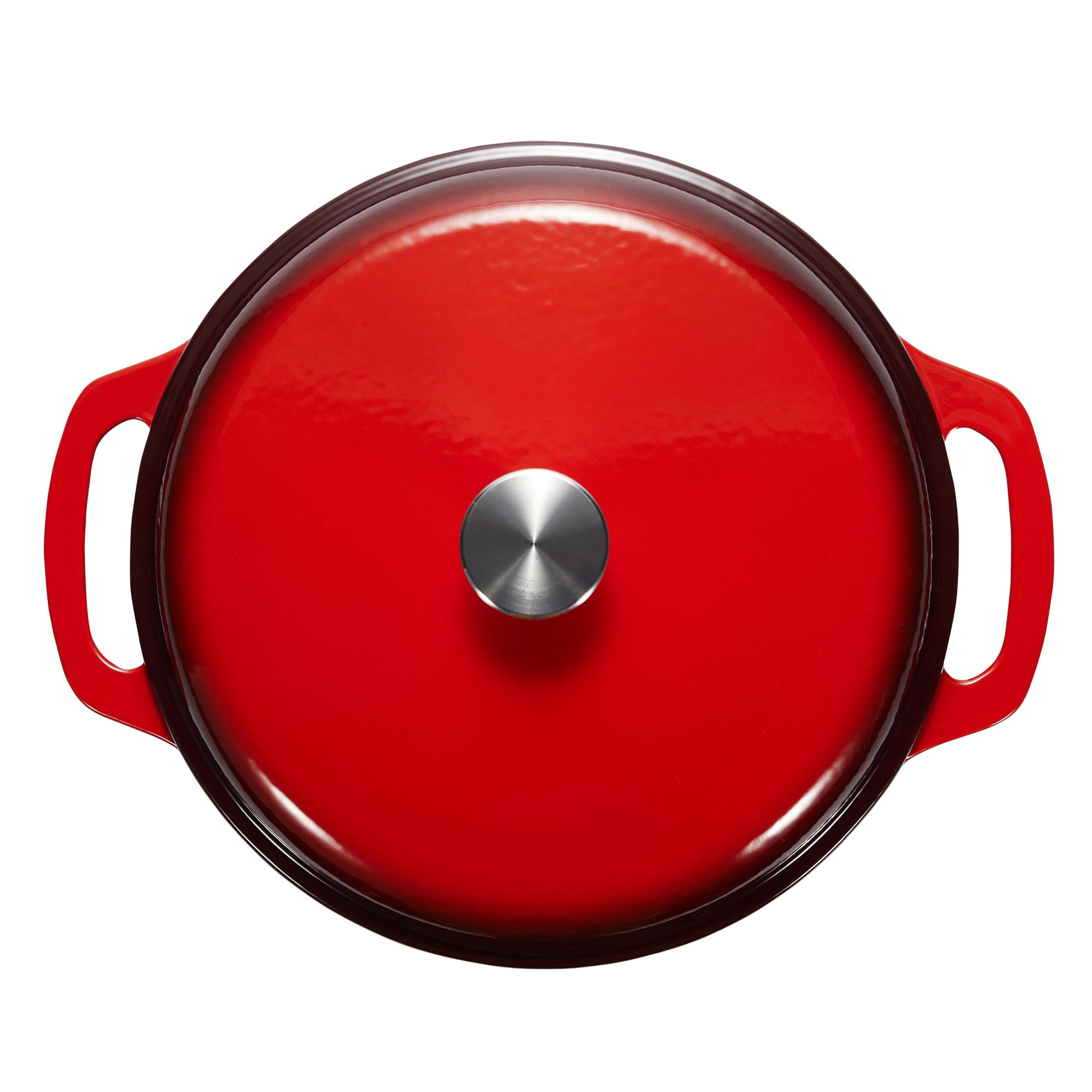 Amazon Basics Rund Bräter Schmortopf aus emailliertem Gusseisen, 4.1 L, Rot