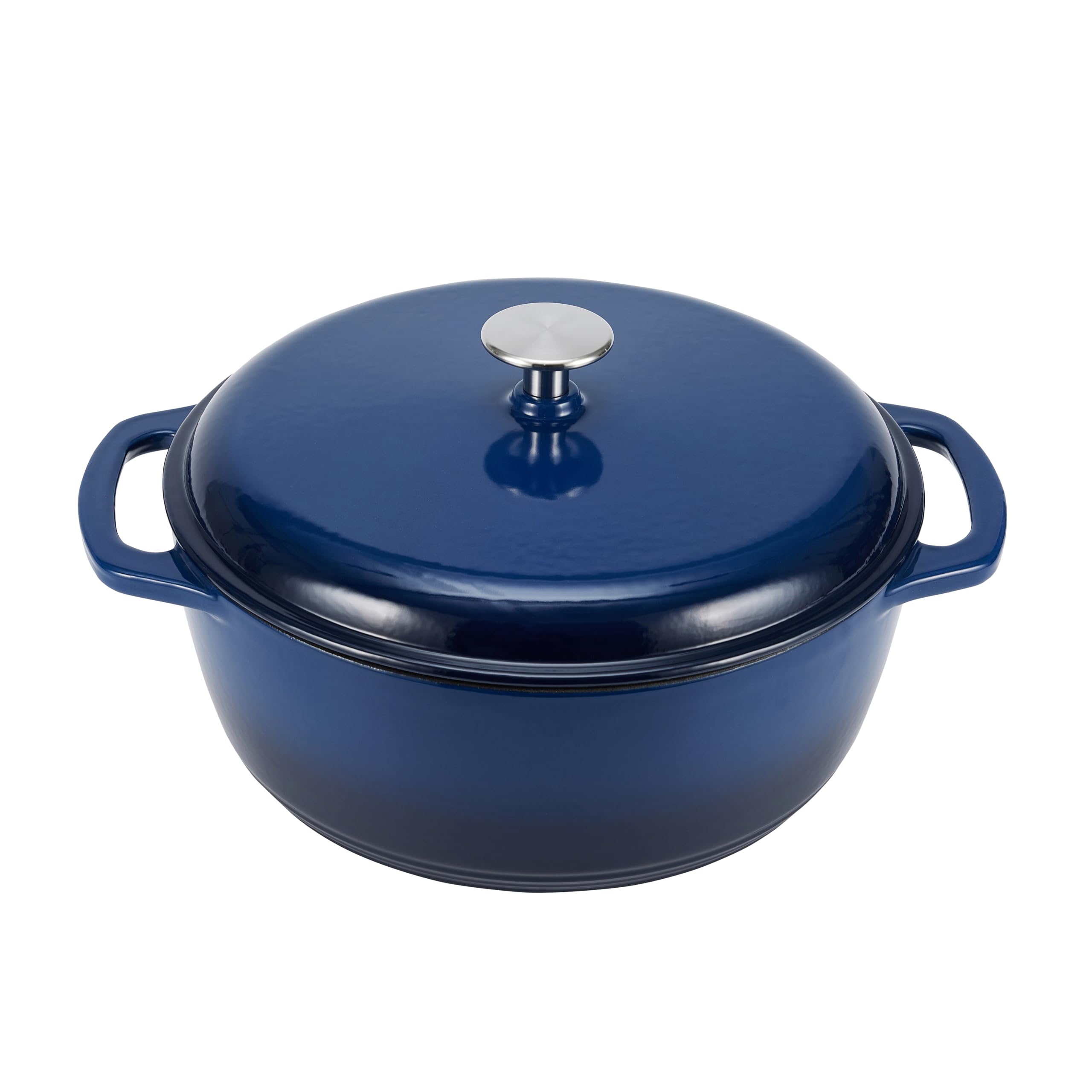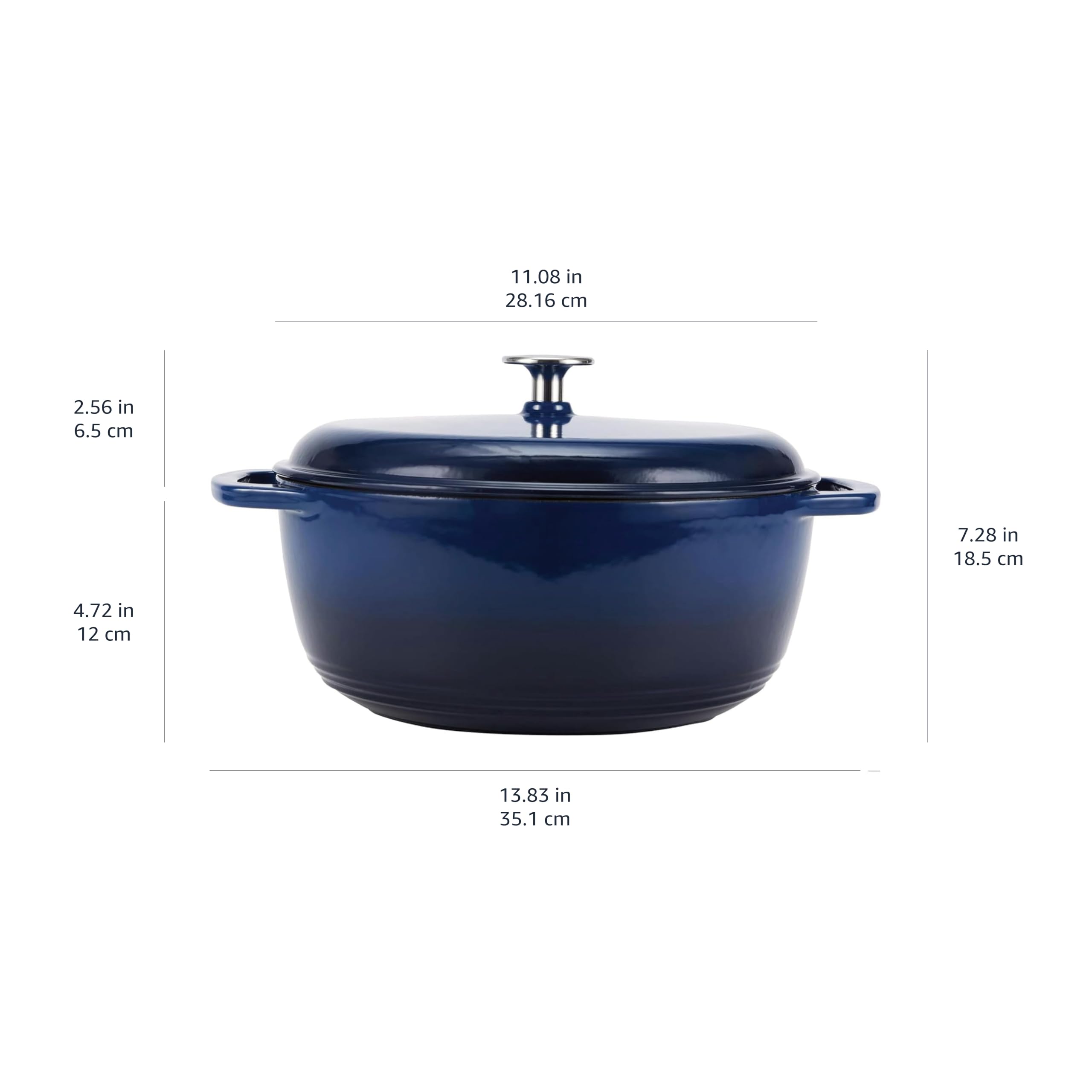 Amazon Basics Rund Schmortopf aus emailliertem Gusseisen, 5.7 L, Marineblau