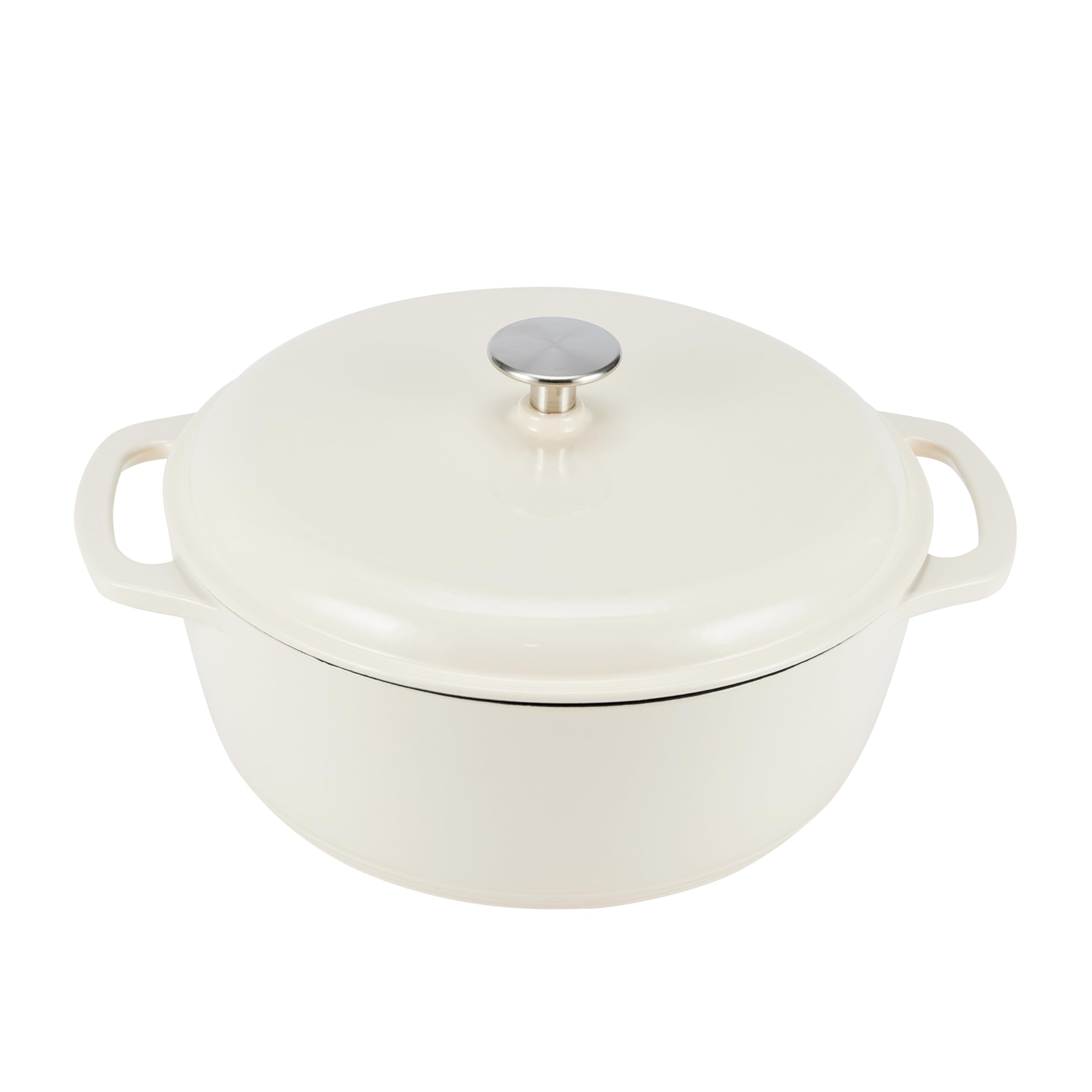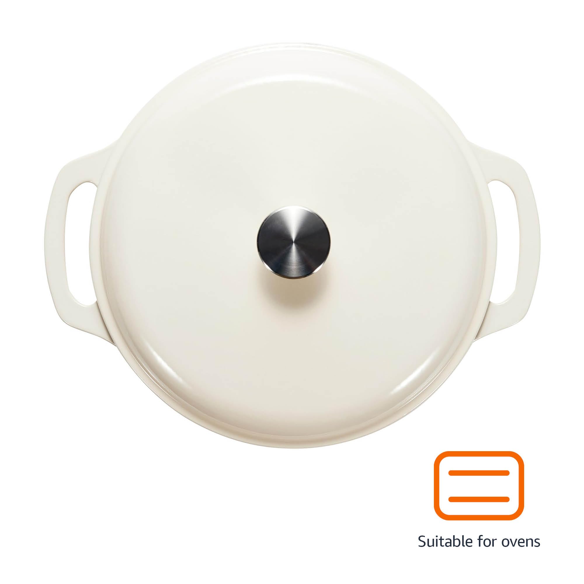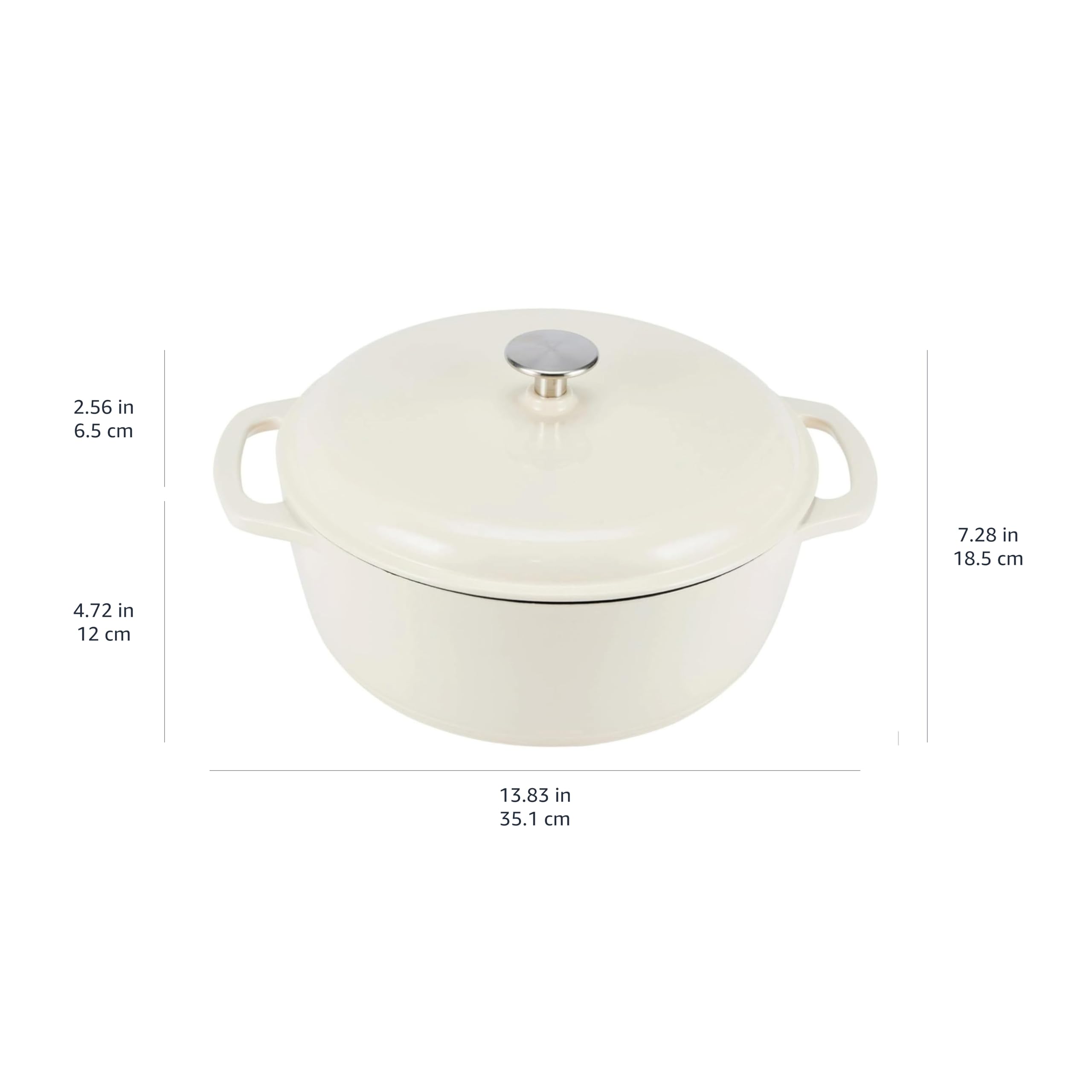 Amazon Basics Rund Schmortopf aus emailliertem Gusseisen, mit Deckel, 5.7 L, Weiss