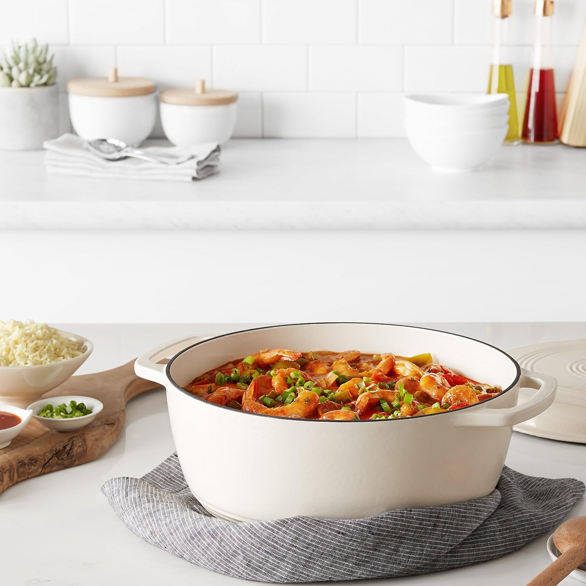 Amazon Basics - Rund Schmortopf aus emailliertem Gusseisen, mit Deckel, 6.9 L, Weiss