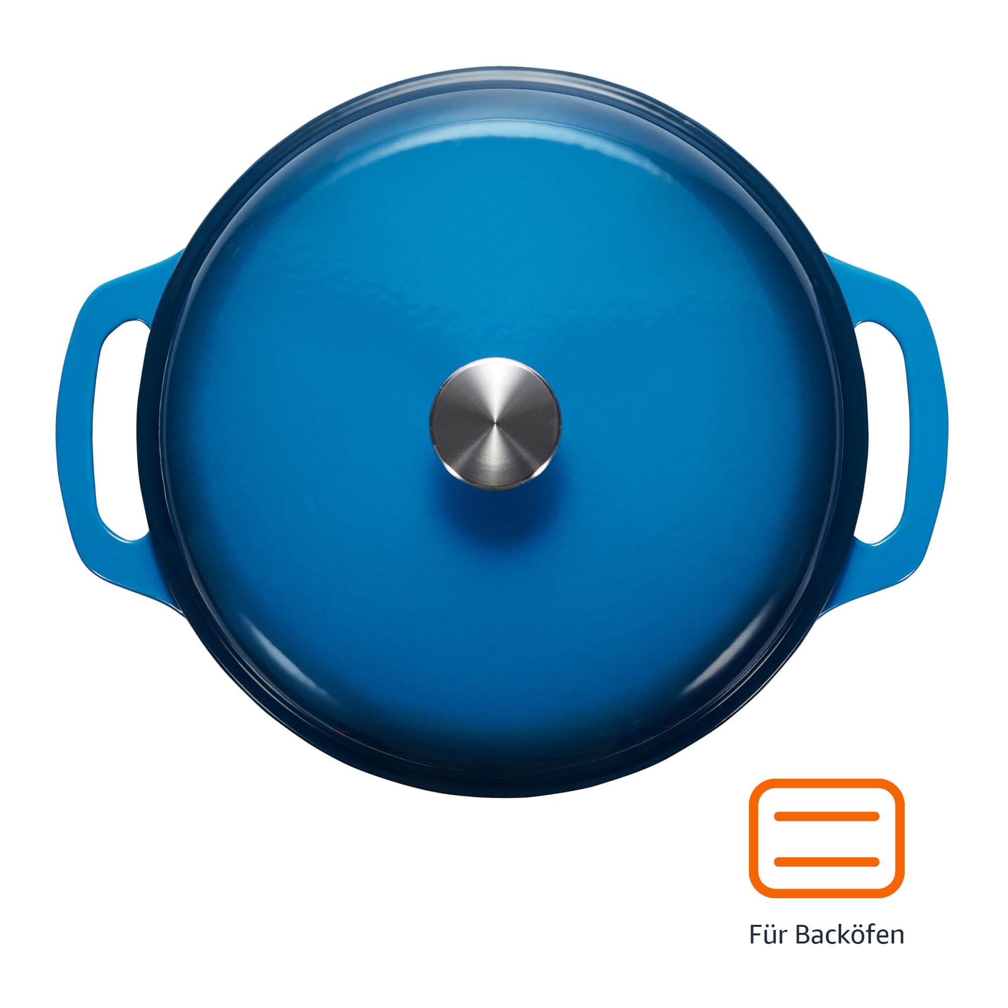 Amazon Basics Rund Bräter Schmortopf aus emailliertem Gusseisen, 5.7 L, Blau