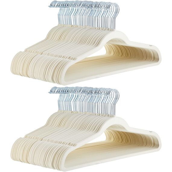 Amazon Basics Schmale und rutschfeste Kleiderbügel für Hemden/Anzug/Kostüm, 100er-Pack, Elfenbein