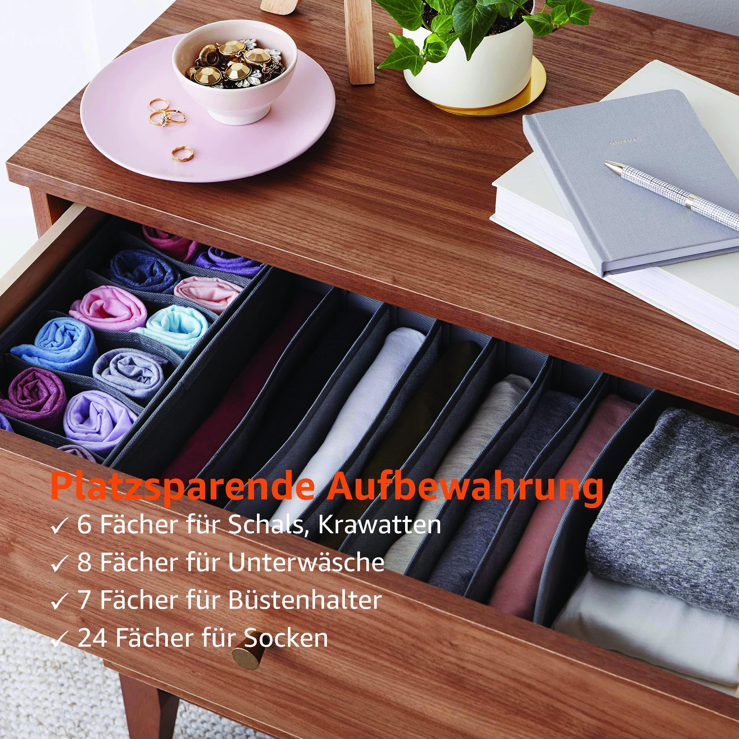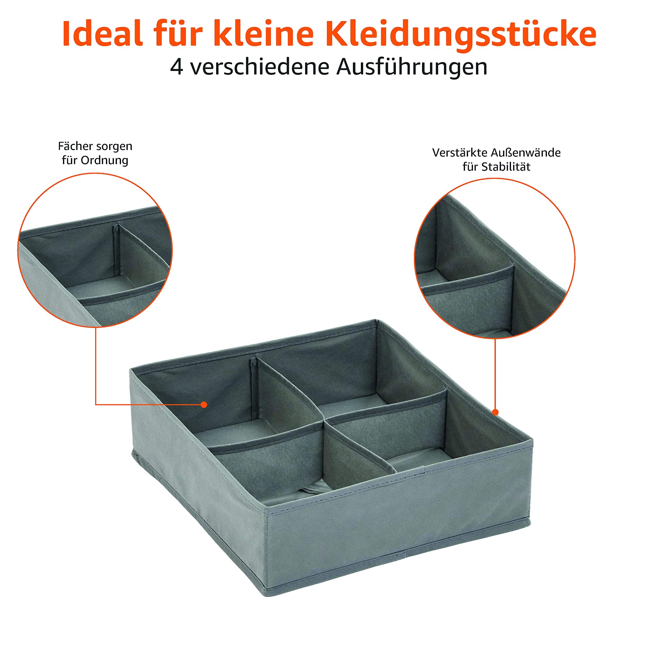 Amazon Basics Schubladen-Organizer für Unterwäsche, 4 Stück, grau