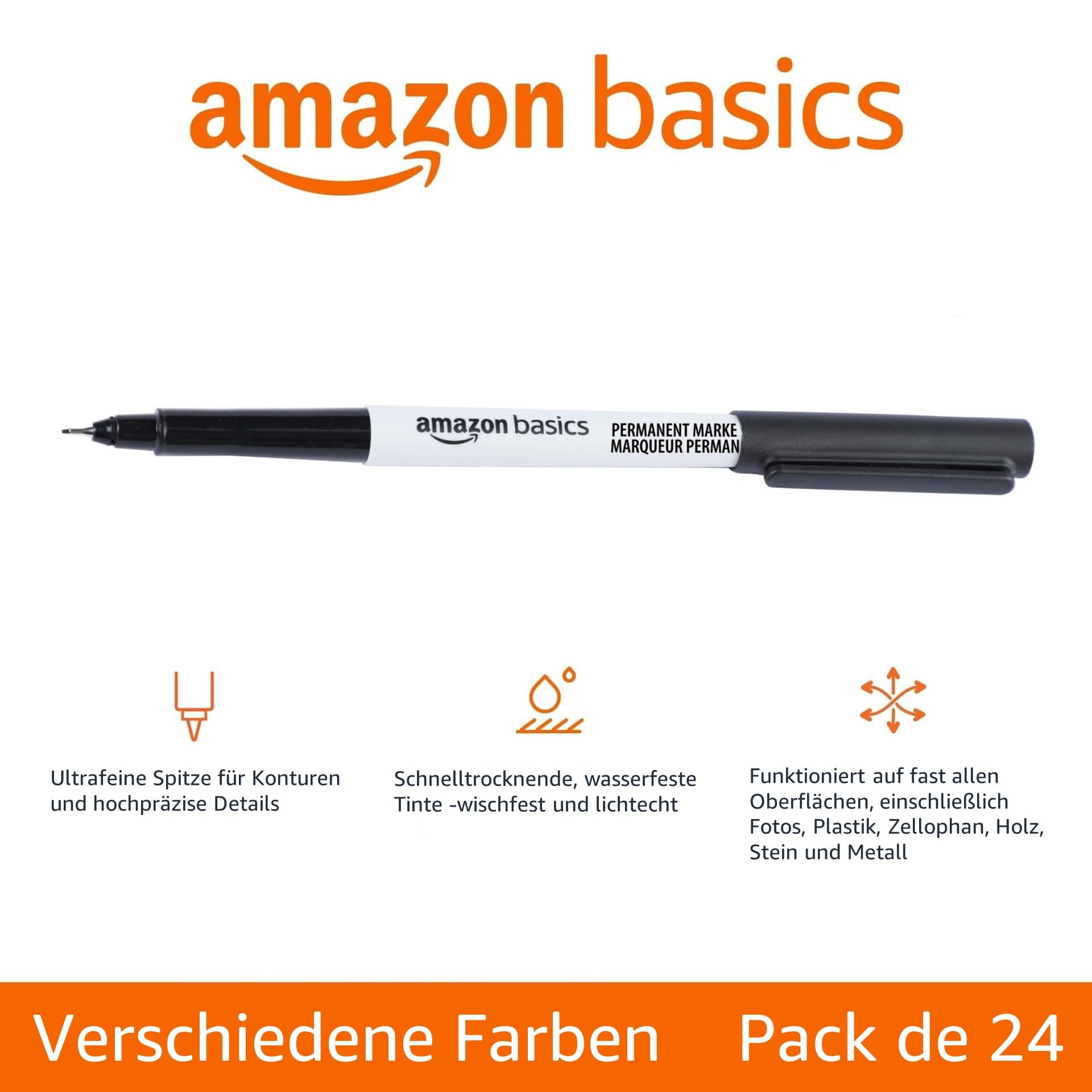 Amazon Basics Ultra Fine Point Permanent Markers, Assorted Colors, 24-Pack
