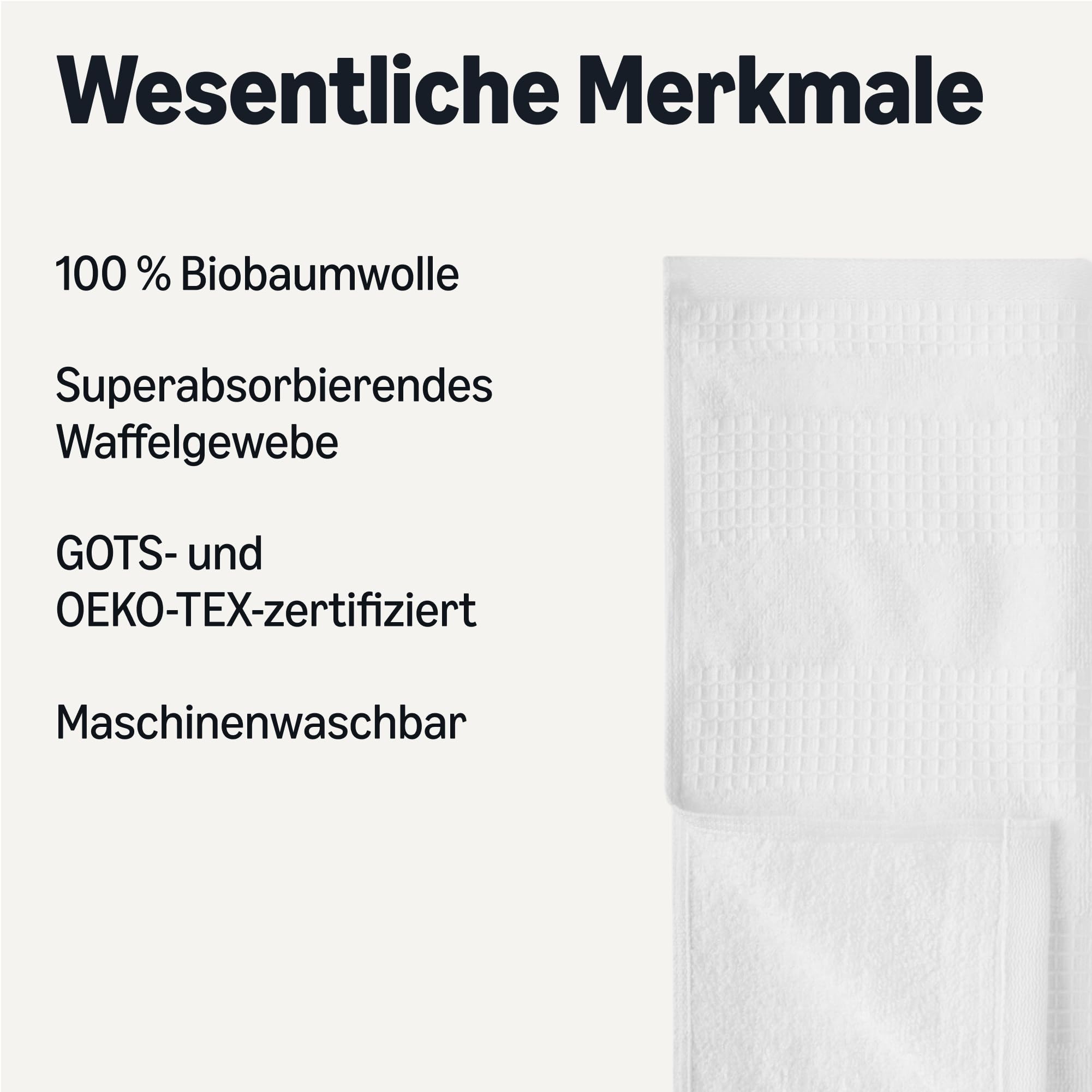 • 100 % PREMIUM-BIOBAUMWOLLE: Die ultra-saugfähige Waffelgewebestruktur bietet eine hervorragende Feuchtigkeitsaufnahme und schnelle Trocknung für alle Ihre Anforderungen in der Küche