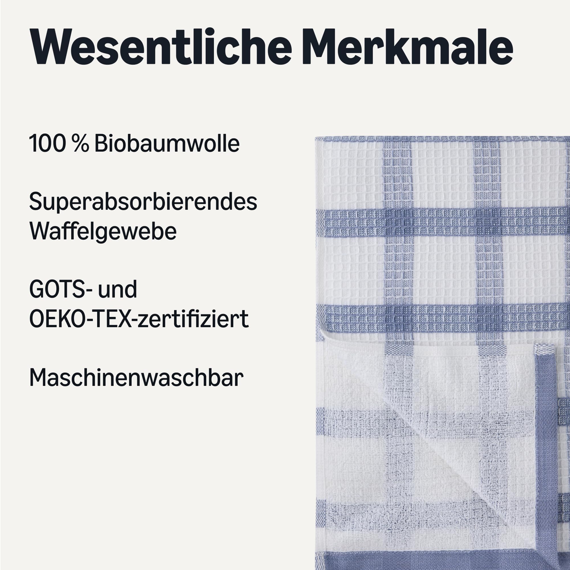 • 100 % PREMIUM-BIOBAUMWOLLE: Die ultra-saugfähige Waffelgewebestruktur bietet eine hervorragende Feuchtigkeitsaufnahme und schnelle Trocknung für alle Ihre Anforderungen in der Küche