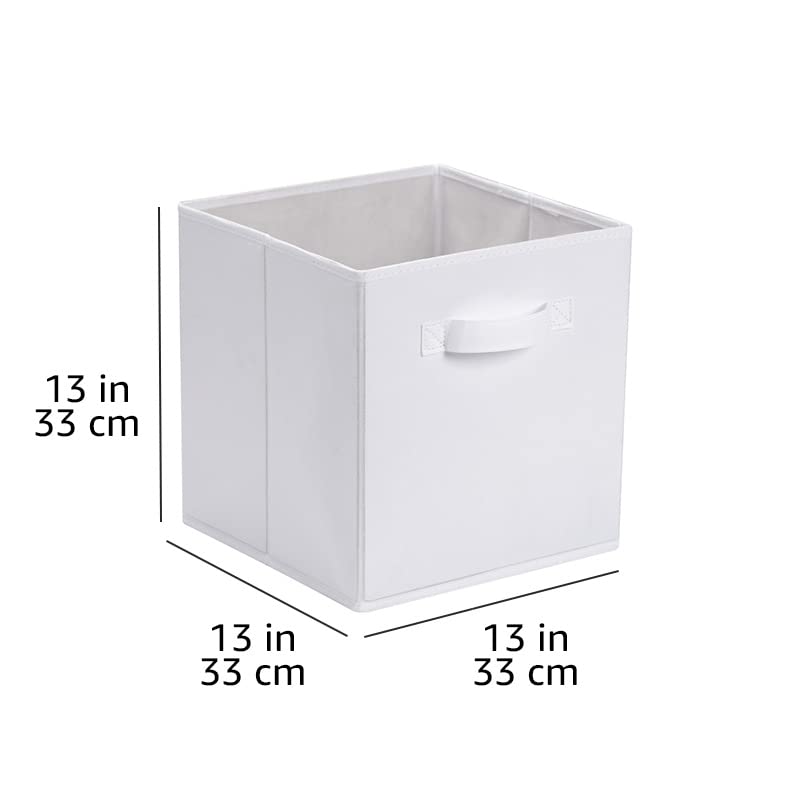 Amazon Basics zusammenklappbarer Aufbewahrungswürfel/Organizer aus Stoff mit Griffen, 33 cm x 33 cm x 33 cm, Einfarbig Weiss, 6 Stück