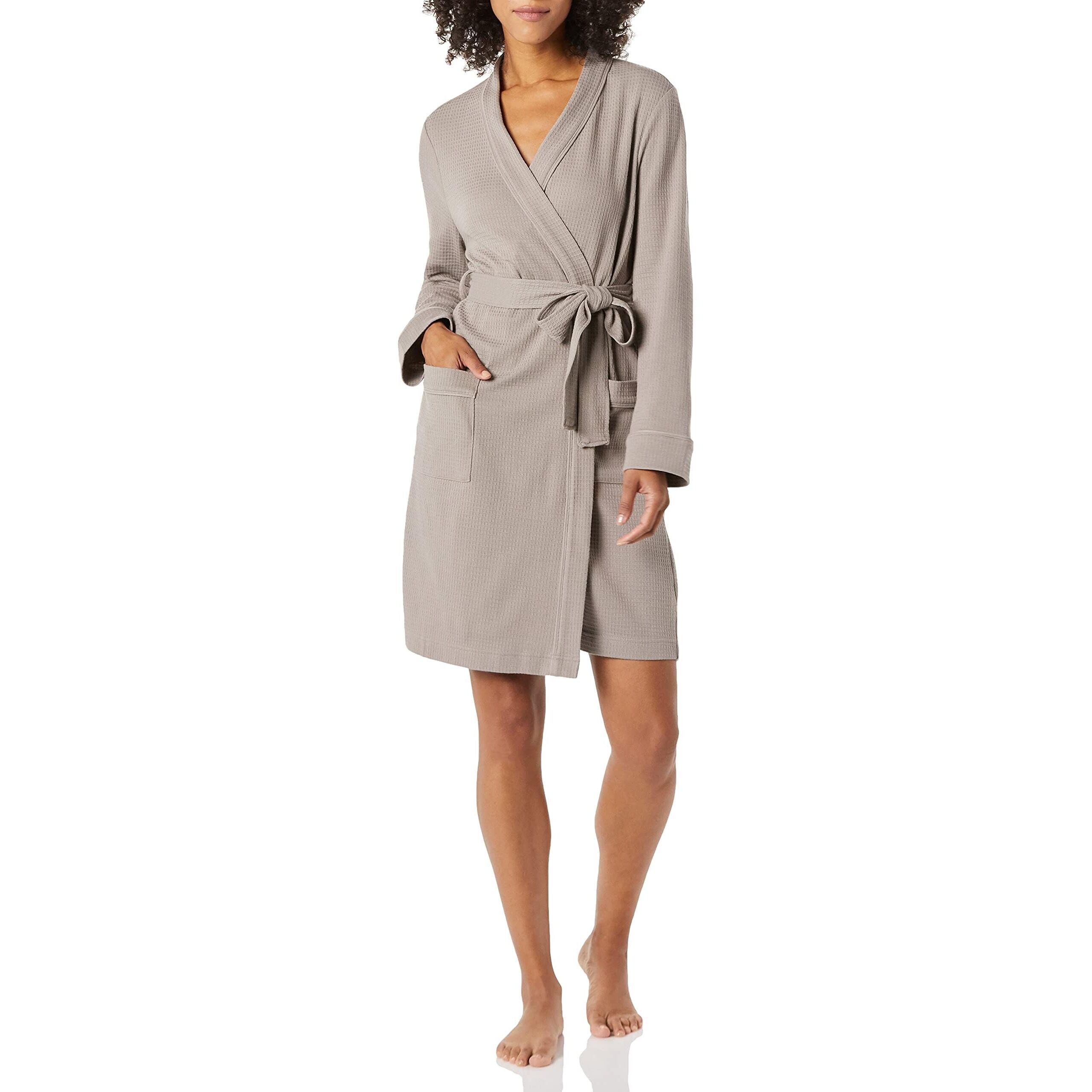 Amazon Essentials Damen Leichter Waffel-Bademantel, Mittellang (Erhältlich In Übergröße), Rauchgrau, XL