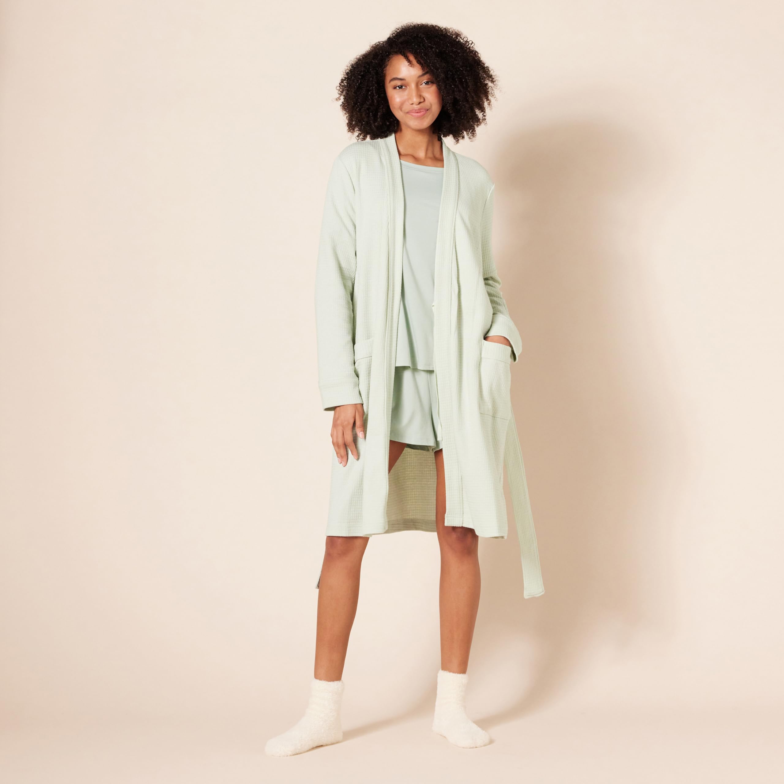 • DETAILS: Verfügt über moderne Zierleisten um die vordere Knopfleiste, an den Ärmelbündchen und am oberen Rand der Tasche, einen verstellbaren Gürtel mit innenliegendem Taillenband, um Ihren Morgenmantel an Ort und Stelle zu halten, sowie vordere aufgesetzte Taschen, um Ihre kleinen Essentials zu verstauen.