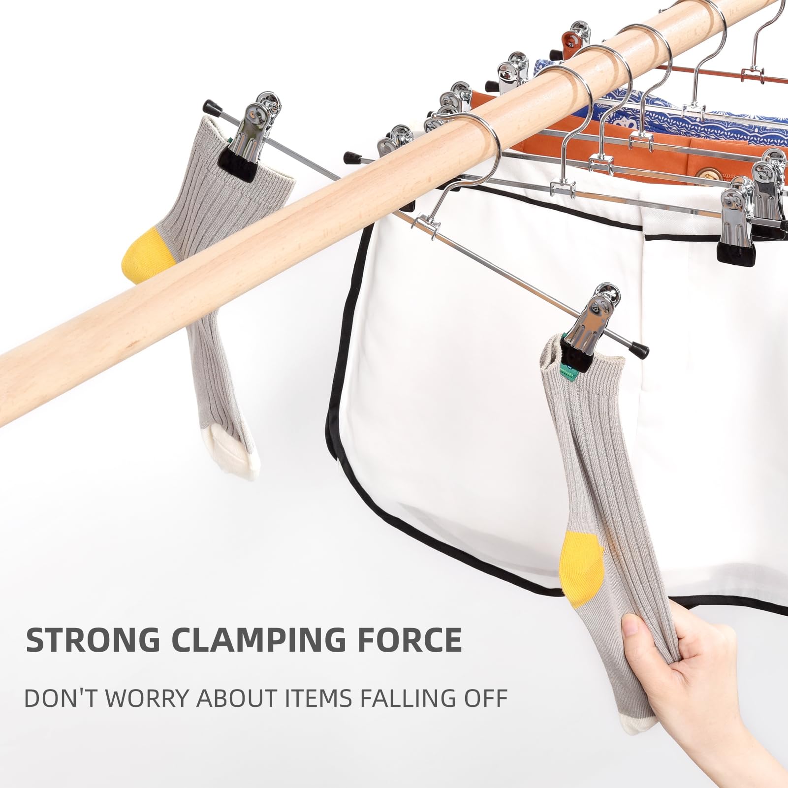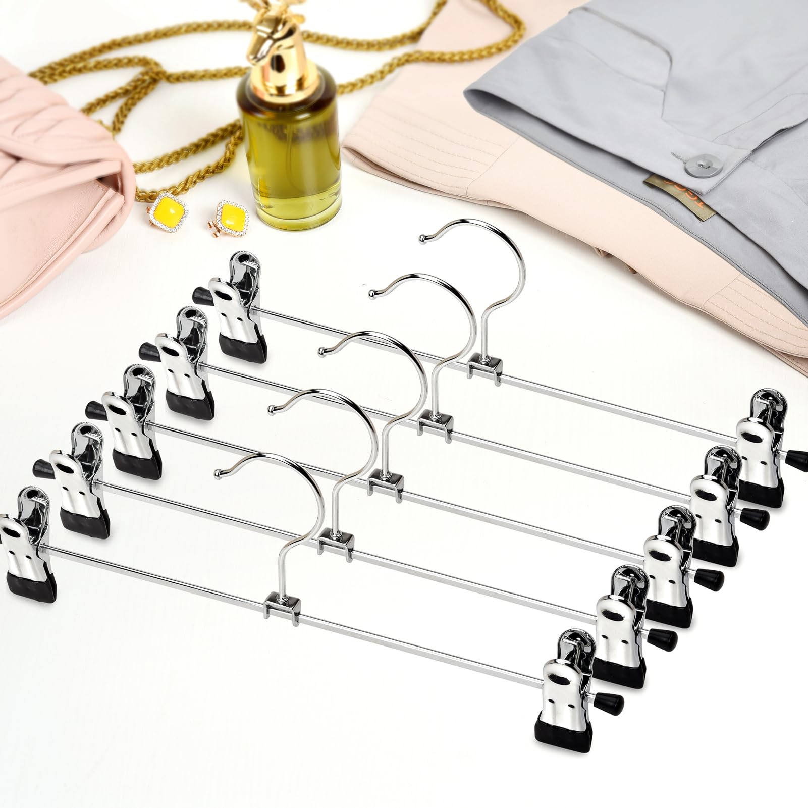 Amber Home 24 Stück 30cm Chrom Eisen Kleiderbügel, Silber Metall Hosenbügel Aufhänger für Hosen Shorts Rock Socken Unterwäsche, mit rutschfest Clips