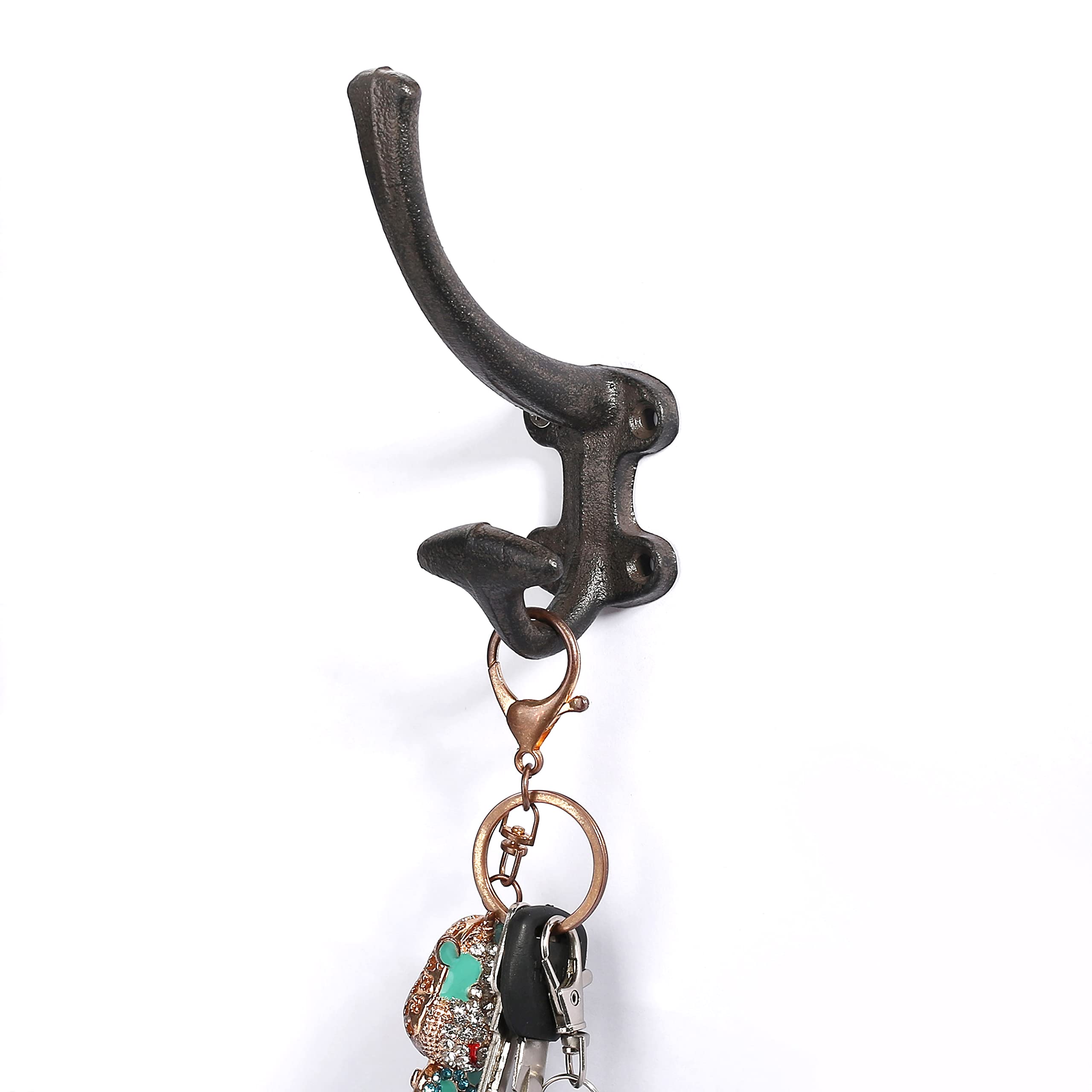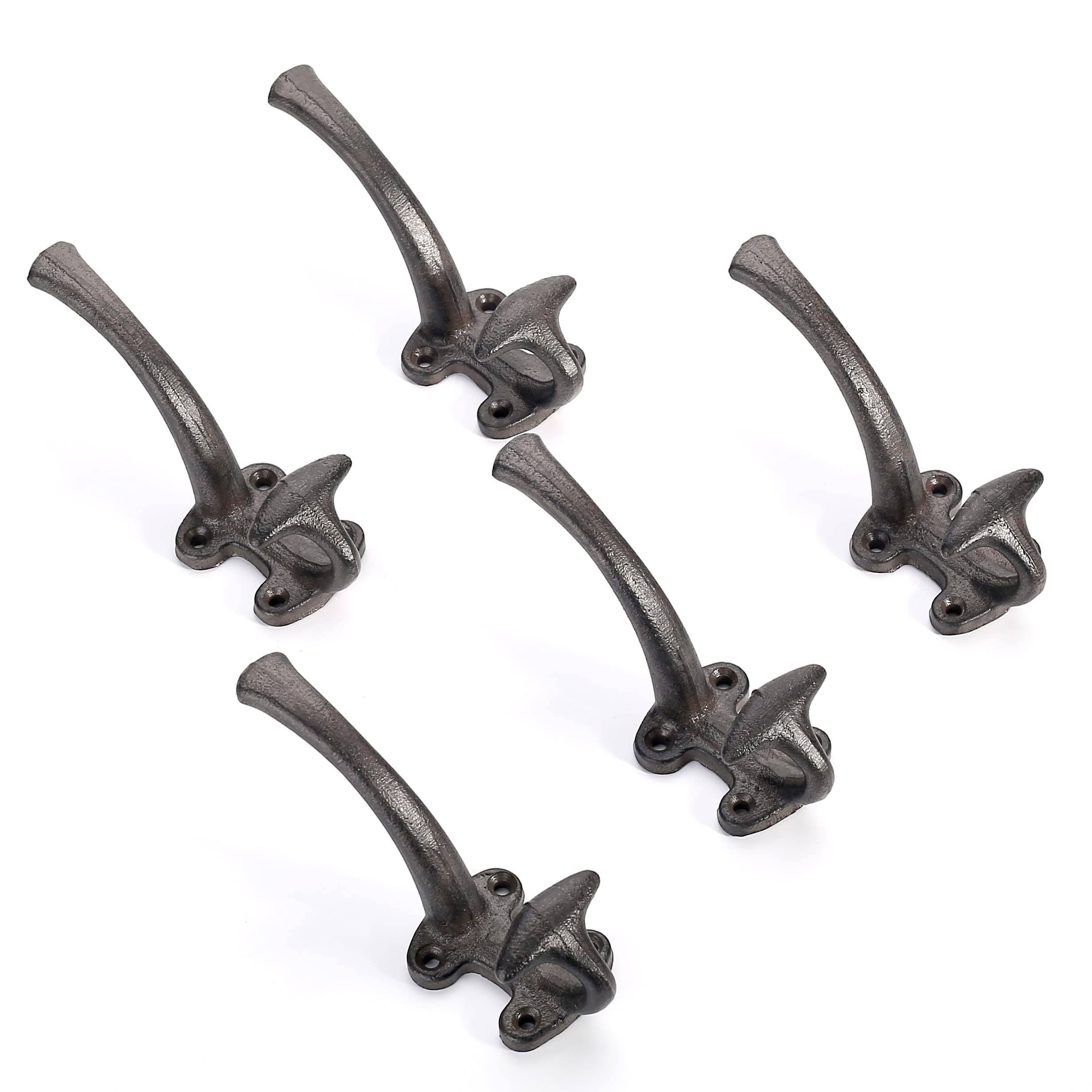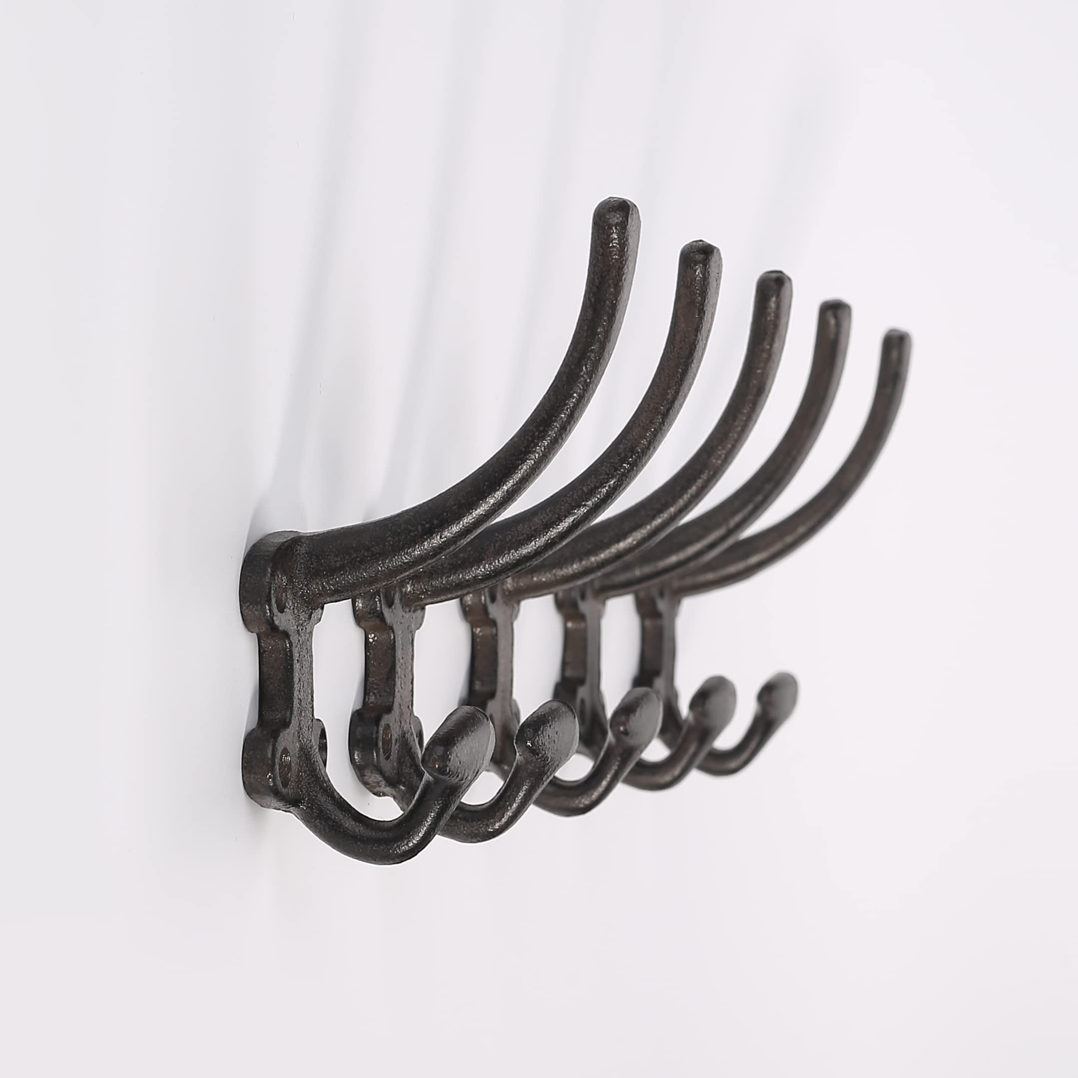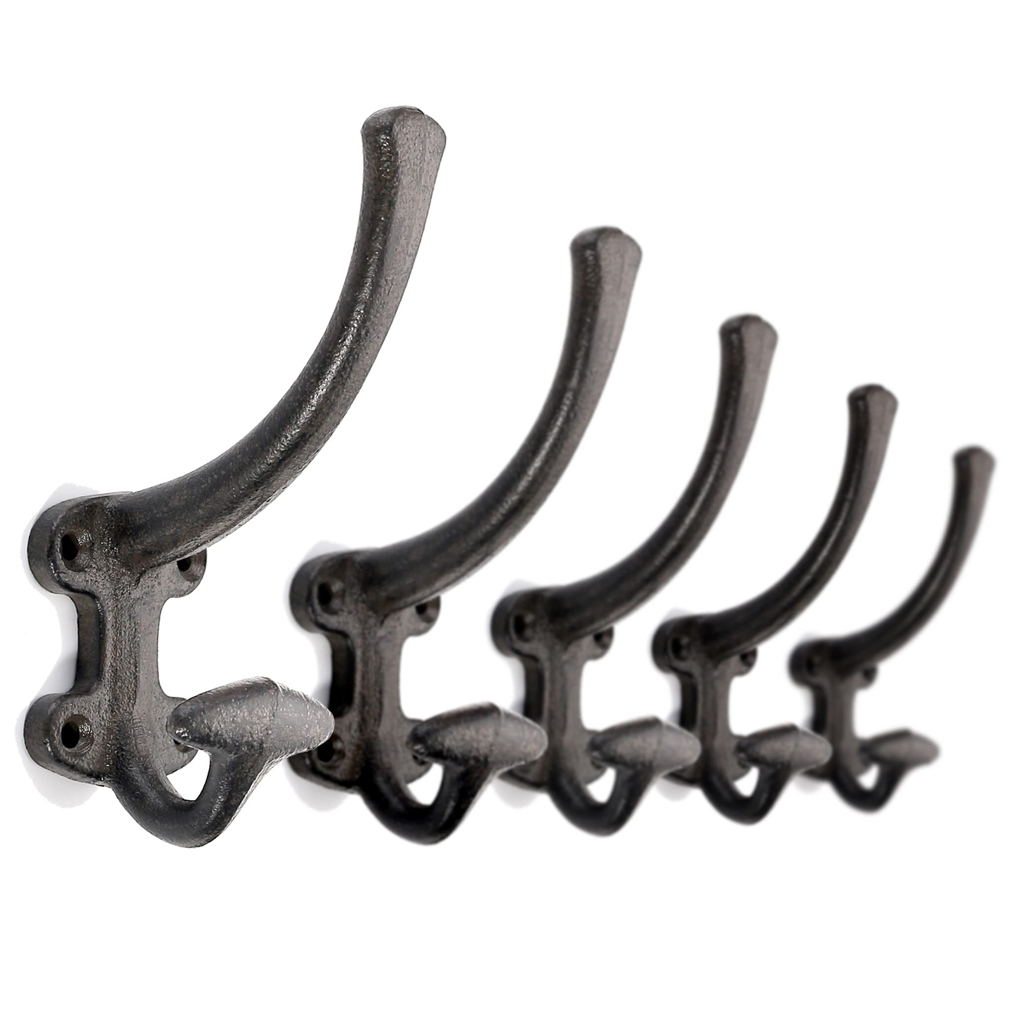 Ambipolar 5 x robuste Doppel-Wandhaken aus Gusseisen, Vintage-Stil, schwarz, Wandmontage, für Schlamm, Hutablage, Geldbörsenhaken