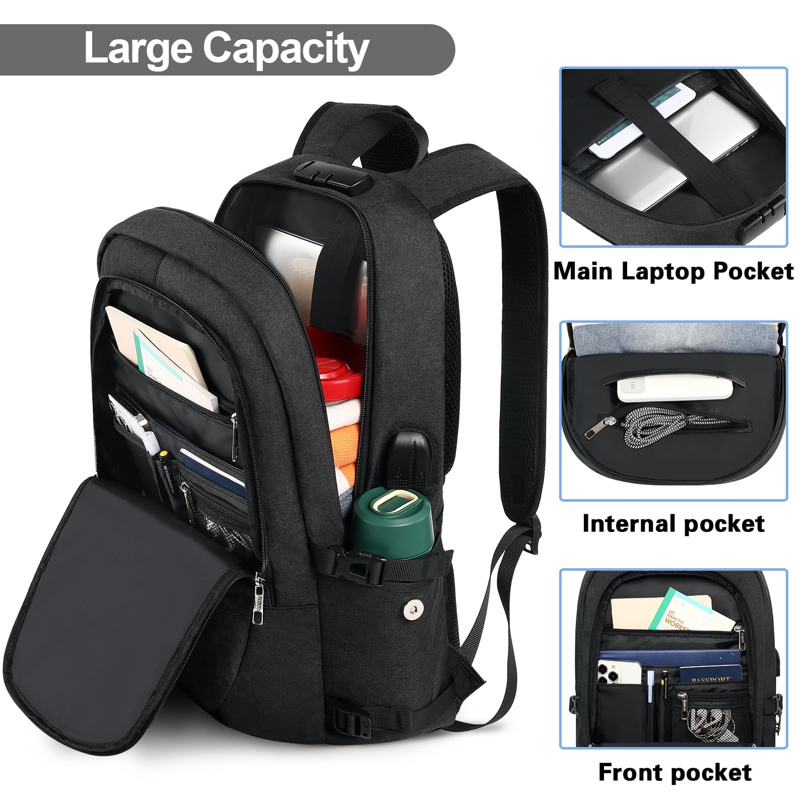 AMBOR Rucksack Herren, 17,3 Zoll Laptop Rucksack Schulrucksack mit USB-Ladeanschluss, Backpack Damen Anti-Diebstahl Rucksack Multifunktion Notebook Tasche Wasserdicht, Schwarz