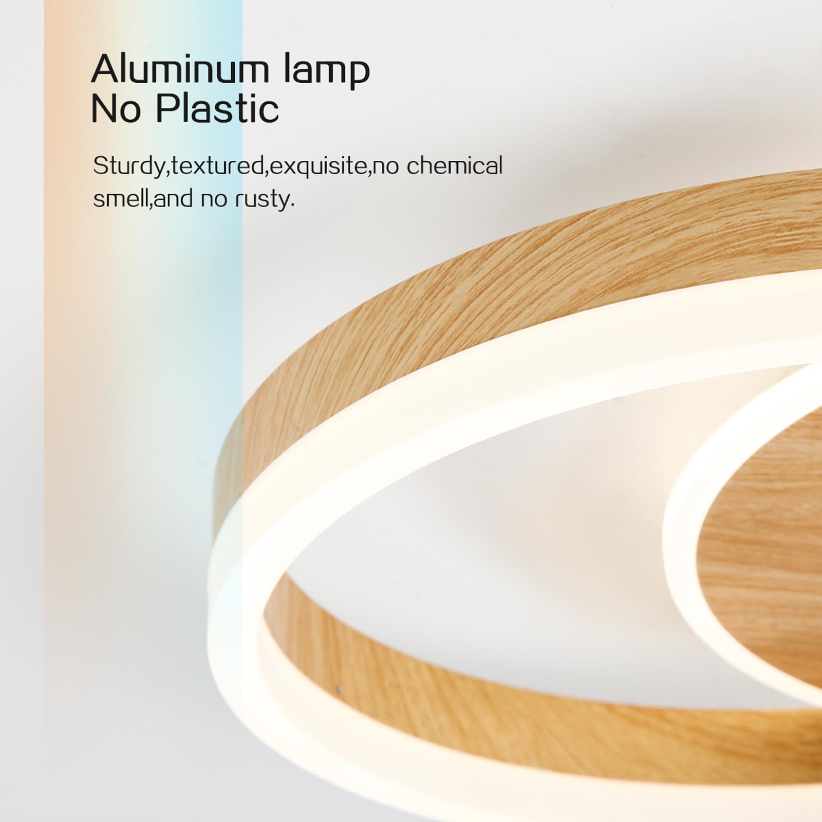 Amdelne LED Deckenlampe Wohnzimmer 50cm 2-Ringe Design, 36W Deckenleuchte Moderne mit Fernbedienung Dimmbar, aus Acryl, Mit Nachtlicht Memory-Funktion, für Schlafzimmer, Esszimmer, Büro, Holzoptik