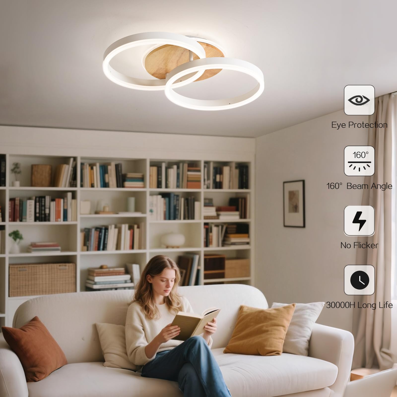 - [2-RINGEN-KREIS-DESIGN] Kreis ist ein klassisches geometrisches Element, diese Deckenlampe besteht aus 2 ausgehöhlten Ringen mit einem Durchmesser von 30 cm und einem massiven kleinen Kreis an der Basis, Die sich symmetrisch überschneidenden Ringe und die geordnete Verflechtung machen die Deckenlampe sehr vielschichtig und räumlich.