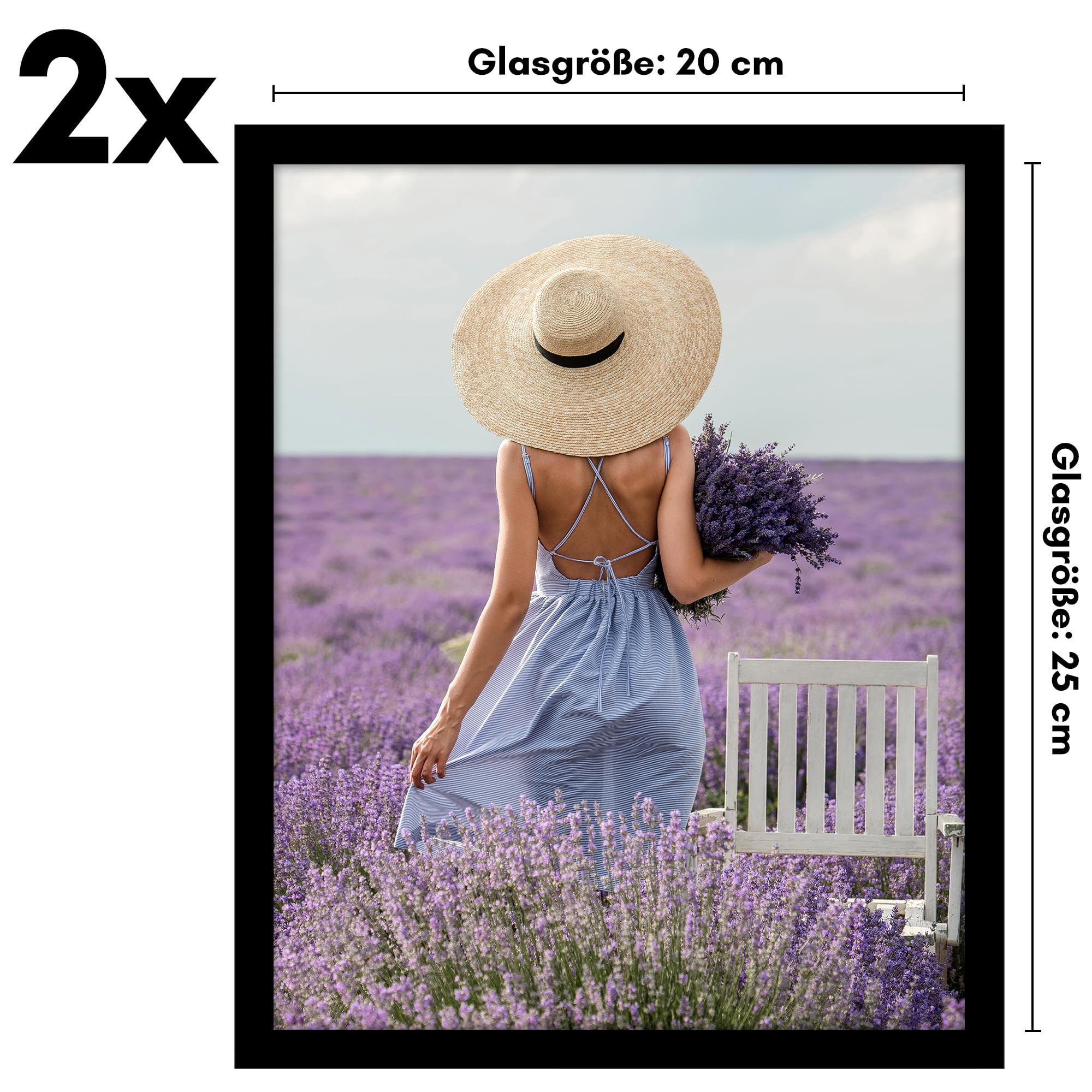 Americanflat Bilderrahmen 20x25 cm aus Kunststoff (2er Pack) - Bilderrahmen 25x20 cm mit bruchsicherer Scheibe - inklusive Ständer und integrierter Aufhängung für Hoch- und Querformat - Schwarz