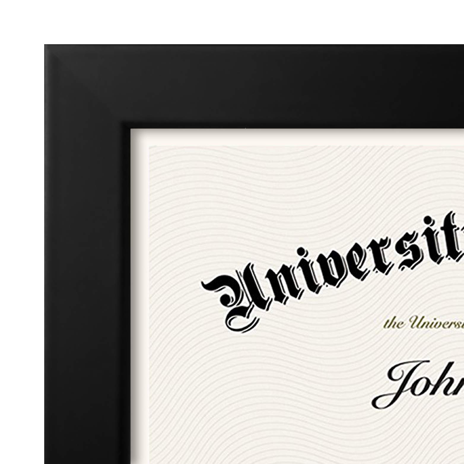 Don’t let your achievements collect dust - display them front and center where they belong with the Americanflat 8.5 x 11 diploma frame, available in a set of 2. Whether it’s your diploma, certificate, or award, these document frame are designed to give your accomplishments the recognition they deserve. Crafted from durable engineered wood (MDF) with an elegant classic molding, this is more than just a frame; it’s a game changer for your decor. The shatter-resistant glass front offers a crystal-clear view while protecting your documents from dust and scratches. Because your favorite moments deserve nothing less than perfection. Versatility meets style with our diploma frames. Hang it vertically or horizontally using the included hanging hardware, or use the easel stand for a tabletop display. It's an ideal way to showcase your cherished moments anywhere in your home or office. No matter how you style it, the black finish adds a timeless touch, instantly elevating your space. Refreshing your display has never been easier. The easy-to-use metal tab closures make swapping photos a breeze, so you can update your walls as often as you like. Plus, the sturdy backboard keeps everything securely in place, ensuring your memories always look their best. Why settle for boring walls when you can have a gallery at home? This 8.5x11 picture frame is built to last, combining style and functionality to create keepsakes you’ll treasure forever. Order yours today and join thousands of satisfied customers who’ve transformed their spaces with Americanflat.