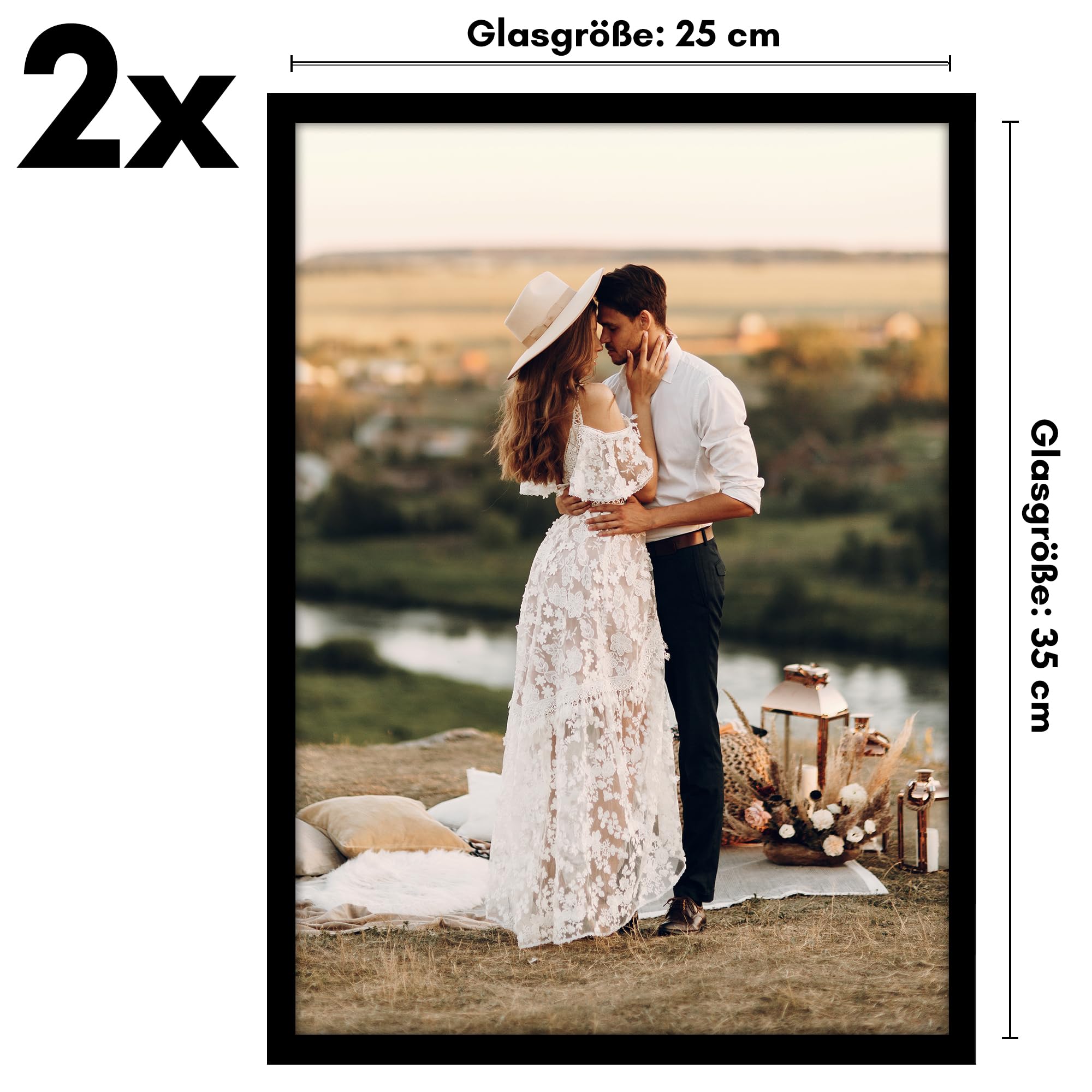 Americanflat Bilderrahmen 25x35 cm aus Kunststoff (2er Pack) - Bilderrahmen 35x25 cm mit bruchsicherer Scheibe - Fotorahmen mit integrierter Aufhängung für Hoch- und Querformat - Schwarz