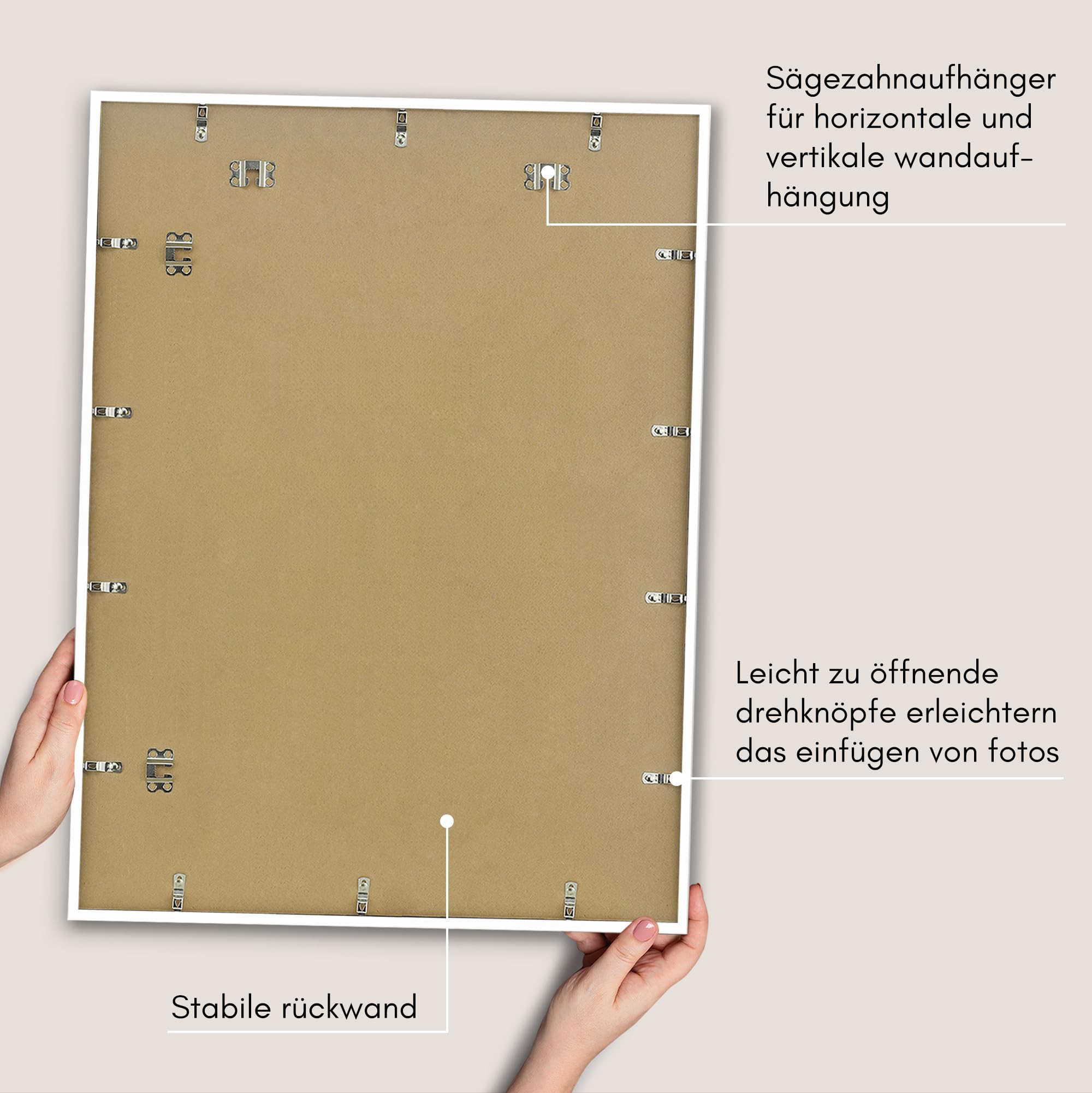 Der Americanflat Kunststoff-Bilderrahmen mit Passepartout zum Aufhängen - modern, klassisch und zeitlos Mit seinen nur 17 mm schlanken Rahmenleisten bietet dieser Bilderrahmen den perfekten Platz, um besondere Erinnerungen stilvoll zu präsentieren. Dank der robusten PVC-Konstruktion, einer stabilen Rückwand und der bruchsicheren Scheibe aus Plexi-Scheibe bleibt der Rahmen über viele Jahre hinweg erhalten und schützt das Bild vor Beschädigungen. Der Rahmen enthält zusätzlich ein weisses Passepartout, das Ihr Kunstwerk oder Foto gekonnt in den Fokus stellt. Auf Wunsch kann das Passepartout entfernt werden, um die volle Fläche des Rahmens zu nutzen. Der Posterrahmen kann sowohl Quer- als auch im Hochformat an der Wand montiert werden - die dafür notwendige Aufhängevorrichtung ist bereits integriert. Rückwand und Glasscheibe sind mit Flexpoints im Rahmen fixiert, was einen unkomplizierten Bilderwechsel ermöglicht. Der Bilderrahmen passt hervorragend zu unterschiedlichsten Wohnungseinrichtungen und ist nicht nur im Wohnzimmer ein Hingucker - er macht sich auch wunderbar in der Küche, im Gästezimmer oder im Büro. Mit seinem zeitlosen Design ist er auch in Cafés oder Restaurants eine stilvolle Ergänzung. Americanflat bietet ein umfangreiches Sortiment an stylishen und modernen Rahmen für Ihr Zuhause. Seit 2015 begeistert das amerikanische Unternehmen mit Sitz in New York seine Kunden mit hochwertigen Rahmen aller Art und Wohnaccessoires. Geschätzt und beliebt bei Millionen von Haushalten in ganz Amerika - und jetzt auch bei uns in Deutschland. Entdecken Sie die vielfältige Auswahl von Americanflat und lassen Sie sich von Qualität und Design begeistern.