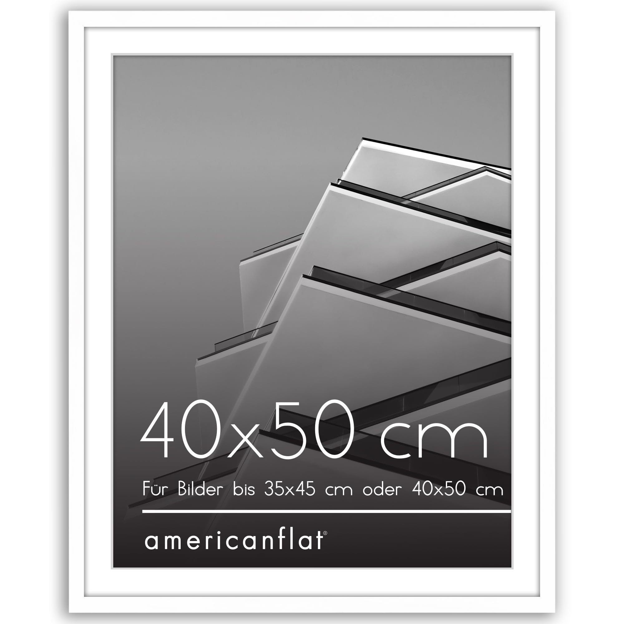 Americanflat Bilderrahmen 40x50 cm Weiss - Bilderrahmen 35x45 cm mit Passepartout - aus Kunststoff mit poliertem Plexi-Scheibe