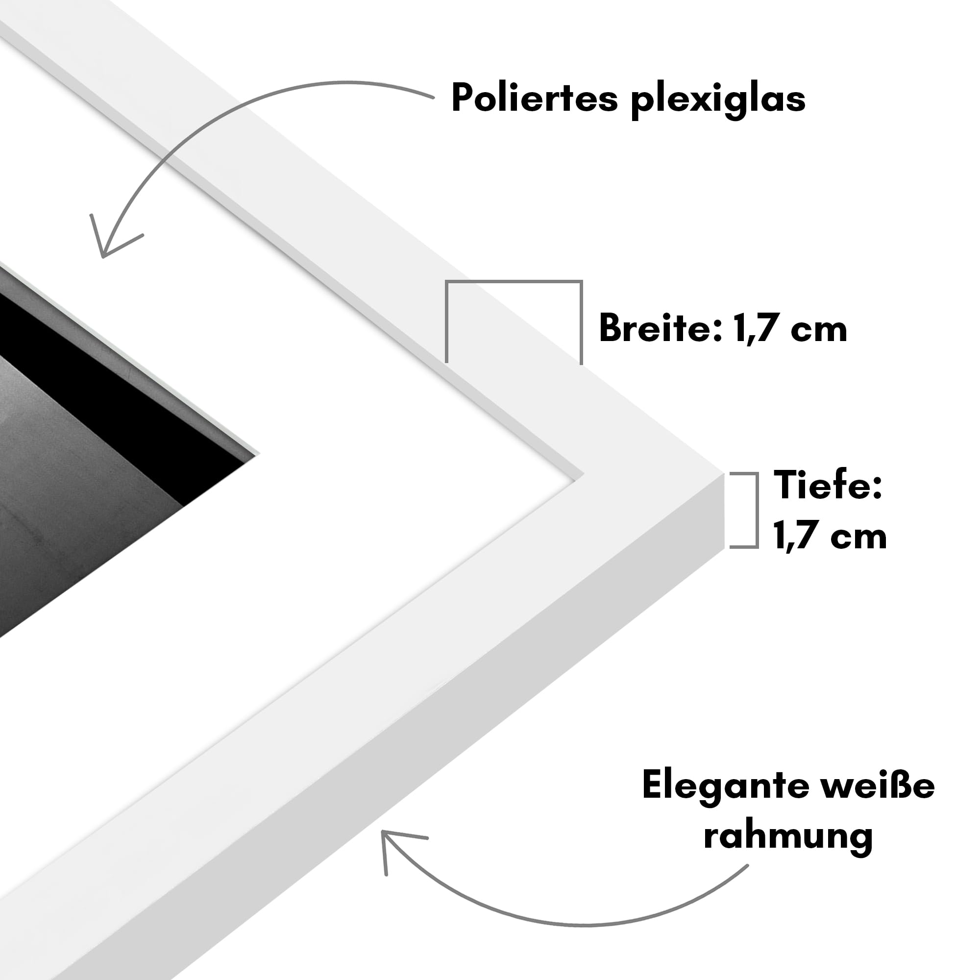 Der Americanflat Kunststoff-Bilderrahmen mit Passepartout zum Aufhängen - modern, klassisch und zeitlos Mit seinen nur 17 mm schlanken Rahmenleisten bietet dieser Bilderrahmen den perfekten Platz, um besondere Erinnerungen stilvoll zu präsentieren. Dank der robusten PVC-Konstruktion, einer stabilen Rückwand und der bruchsicheren Scheibe aus Plexi-Scheibe bleibt der Rahmen über viele Jahre hinweg erhalten und schützt das Bild vor Beschädigungen. Der Rahmen enthält zusätzlich ein weisses Passepartout, das Ihr Kunstwerk oder Foto gekonnt in den Fokus stellt. Auf Wunsch kann das Passepartout entfernt werden, um die volle Fläche des Rahmens zu nutzen. Der Posterrahmen kann sowohl Quer- als auch im Hochformat an der Wand montiert werden - die dafür notwendige Aufhängevorrichtung ist bereits integriert. Rückwand und Glasscheibe sind mit Flexpoints im Rahmen fixiert, was einen unkomplizierten Bilderwechsel ermöglicht. Der Bilderrahmen passt hervorragend zu unterschiedlichsten Wohnungseinrichtungen und ist nicht nur im Wohnzimmer ein Hingucker - er macht sich auch wunderbar in der Küche, im Gästezimmer oder im Büro. Mit seinem zeitlosen Design ist er auch in Cafés oder Restaurants eine stilvolle Ergänzung. Americanflat bietet ein umfangreiches Sortiment an stylishen und modernen Rahmen für Ihr Zuhause. Seit 2015 begeistert das amerikanische Unternehmen mit Sitz in New York seine Kunden mit hochwertigen Rahmen aller Art und Wohnaccessoires. Geschätzt und beliebt bei Millionen von Haushalten in ganz Amerika - und jetzt auch bei uns in Deutschland. Entdecken Sie die vielfältige Auswahl von Americanflat und lassen Sie sich von Qualität und Design begeistern.