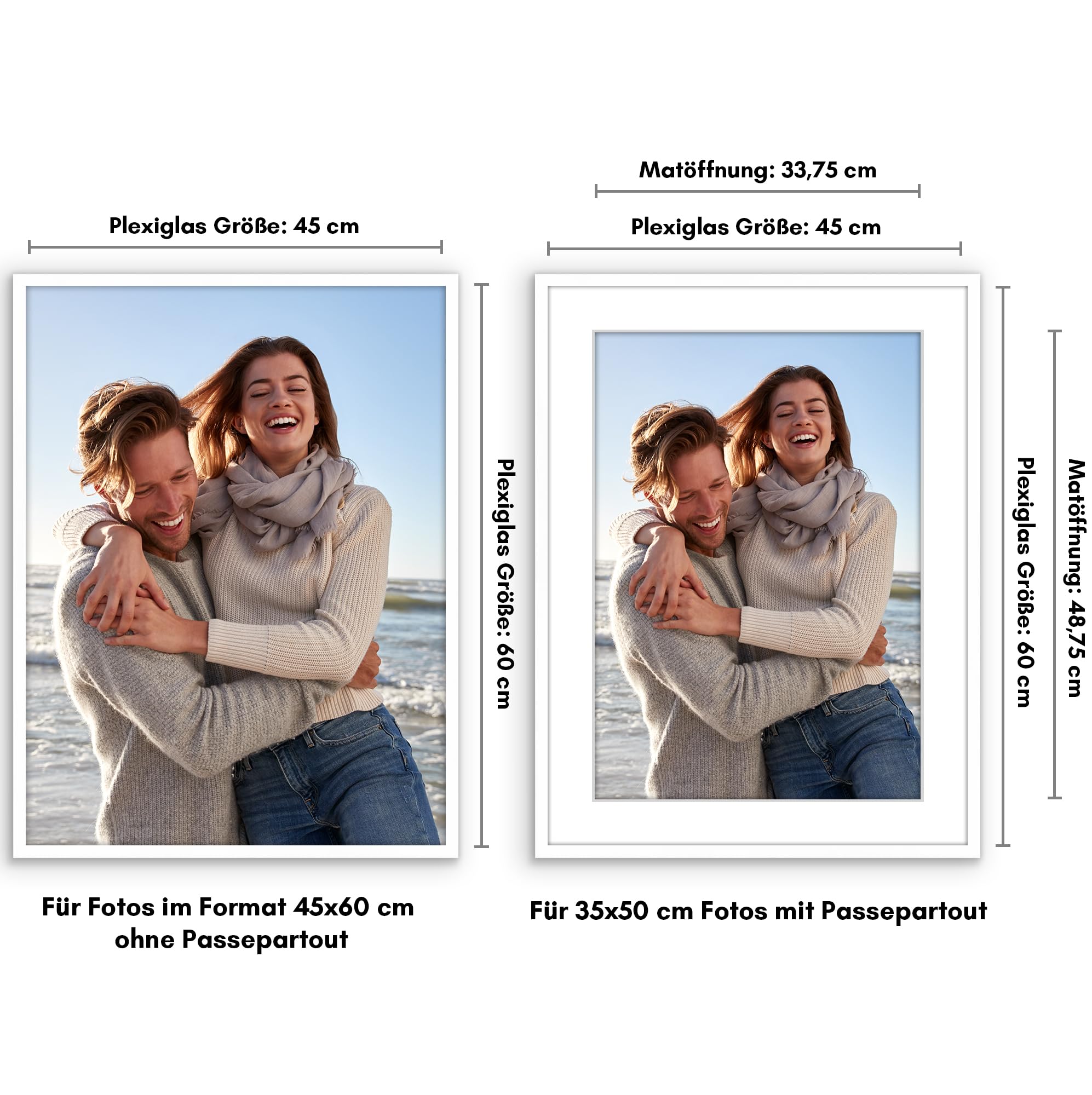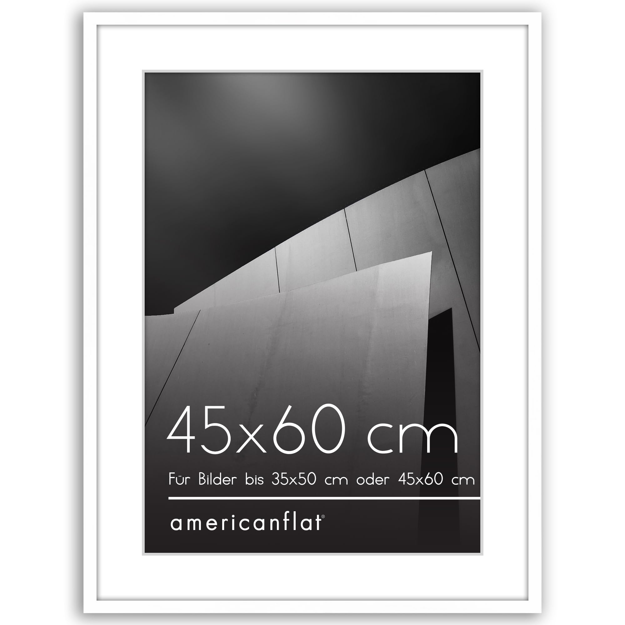 Americanflat Bilderrahmen 45x60 cm Weiss - Bilderrahmen 35x50 cm mit Passepartout - aus Kunststoff mit poliertem Plexi-Scheibe