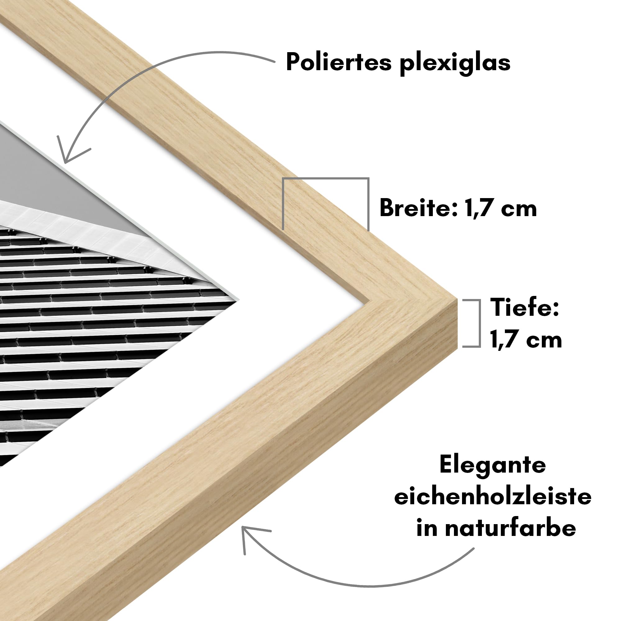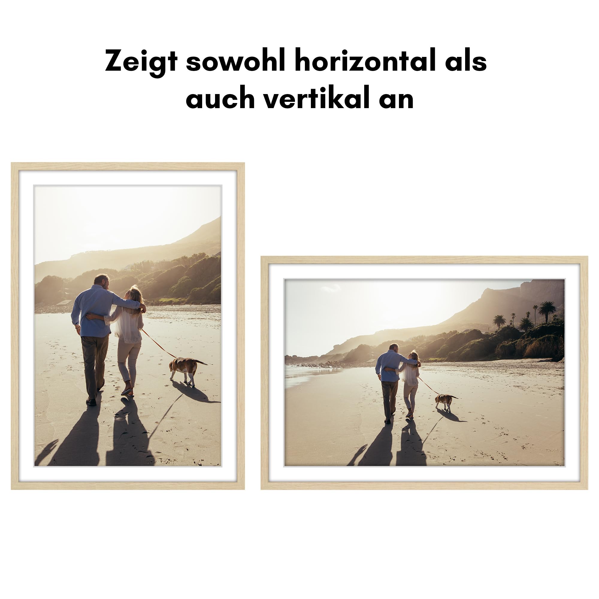 Der Americanflat Kunststoff-Bilderrahmen mit Passepartout zum Aufhängen - modern, klassisch und zeitlos Mit seinen nur 17 mm schlanken Rahmenleisten bietet dieser Bilderrahmen den perfekten Platz, um besondere Erinnerungen stilvoll zu präsentieren. Dank der robusten PVC-Konstruktion, einer stabilen Rückwand und der bruchsicheren Scheibe aus Plexi-Scheibe bleibt der Rahmen über viele Jahre hinweg erhalten und schützt das Bild vor Beschädigungen. Der Rahmen enthält zusätzlich ein weisses Passepartout, das Ihr Kunstwerk oder Foto gekonnt in den Fokus stellt. Auf Wunsch kann das Passepartout entfernt werden, um die volle Fläche des Rahmens zu nutzen. Der Posterrahmen kann sowohl Quer- als auch im Hochformat an der Wand montiert werden - die dafür notwendige Aufhängevorrichtung ist bereits integriert. Rückwand und Glasscheibe sind mit Flexpoints im Rahmen fixiert, was einen unkomplizierten Bilderwechsel ermöglicht. Der Bilderrahmen passt hervorragend zu unterschiedlichsten Wohnungseinrichtungen und ist nicht nur im Wohnzimmer ein Hingucker - er macht sich auch wunderbar in der Küche, im Gästezimmer oder im Büro. Mit seinem zeitlosen Design ist er auch in Cafés oder Restaurants eine stilvolle Ergänzung. Americanflat bietet ein umfangreiches Sortiment an stylishen und modernen Rahmen für Ihr Zuhause. Seit 2015 begeistert das amerikanische Unternehmen mit Sitz in New York seine Kunden mit hochwertigen Rahmen aller Art und Wohnaccessoires. Geschätzt und beliebt bei Millionen von Haushalten in ganz Amerika - und jetzt auch bei uns in Deutschland. Entdecken Sie die vielfältige Auswahl von Americanflat und lassen Sie sich von Qualität und Design begeistern.