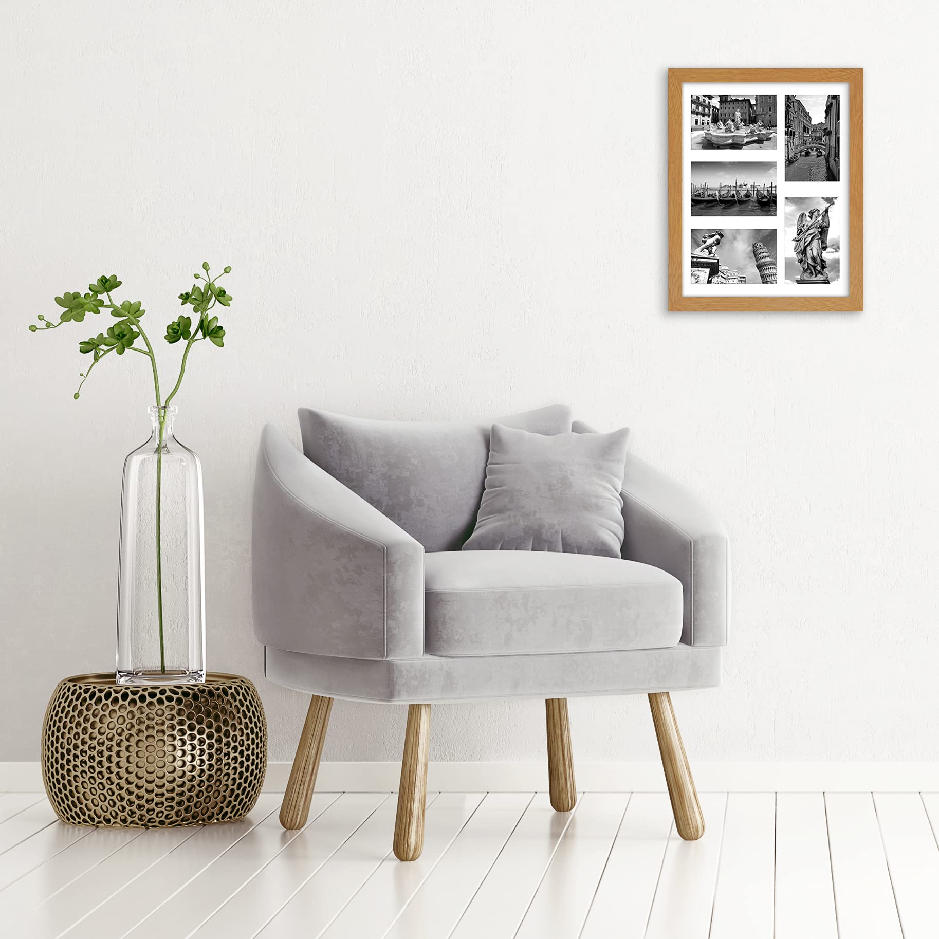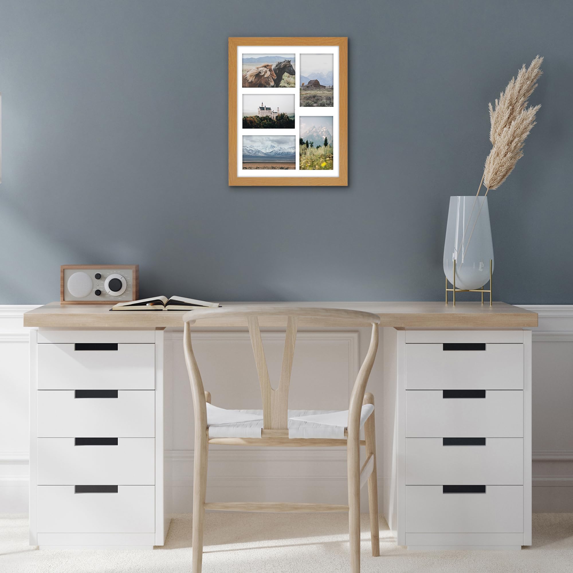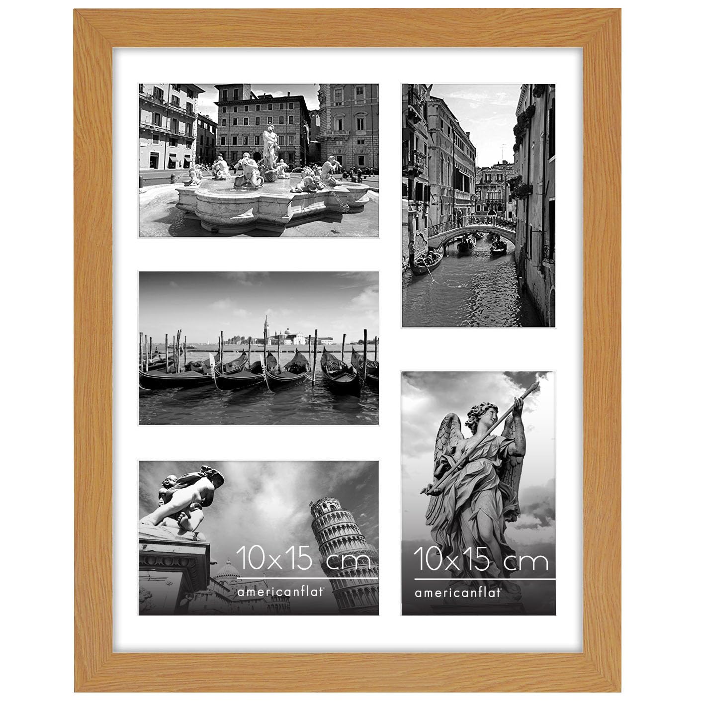 Americanflat 28x35,6 cm Bilderrahmen Collage - Fünf 10x15 Bilder mit Matte & 28x35,6 ohne Matte anzeigen - Bilderrahmen für Mehrere Bilder der Familie - Verbundholz mit Bruchsicheres Glas - Eichenholz