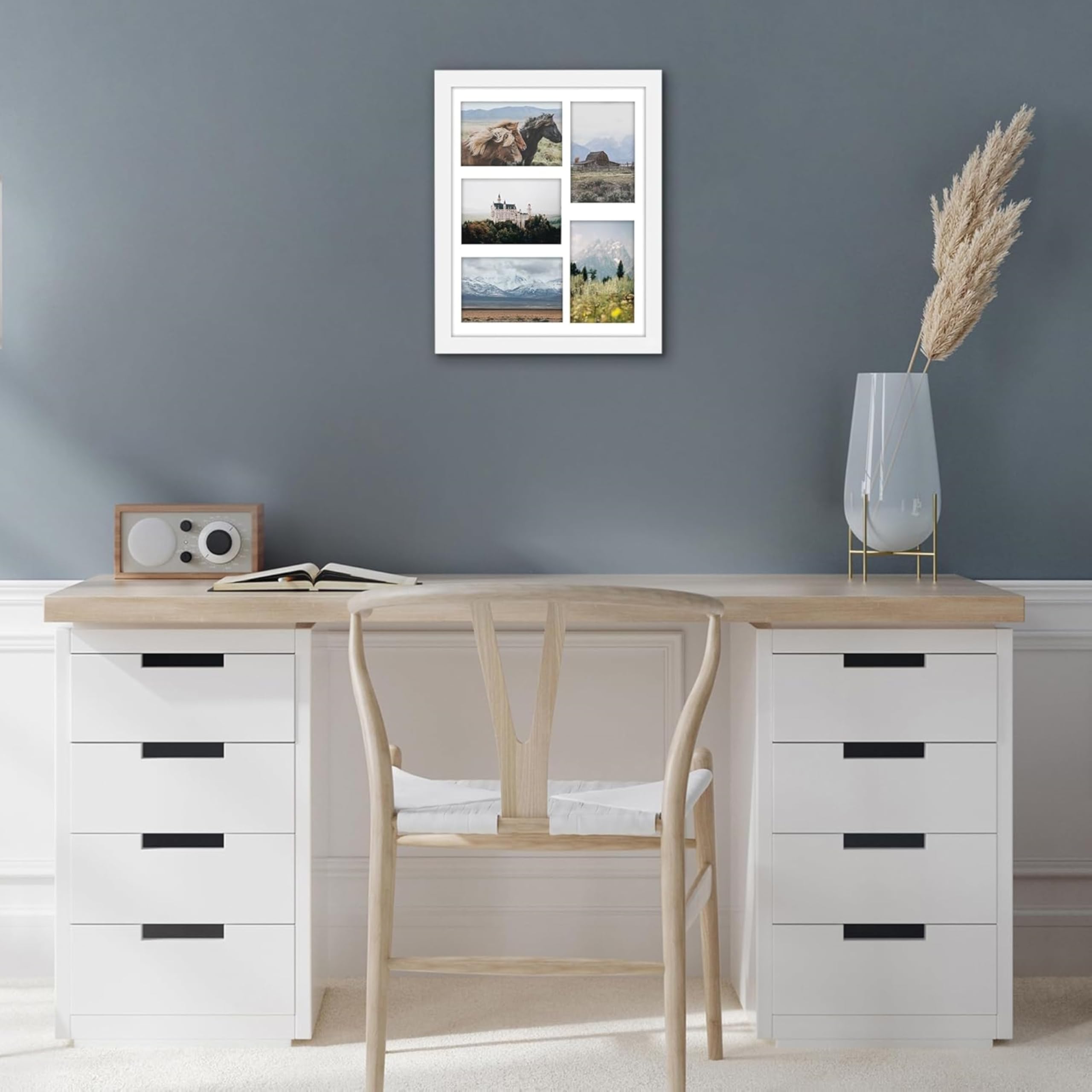 Americanflat 28x35,6 cm Bilderrahmen Collage Weiss - Fünf 10x15 Bilder mit Matte & 28x35,6 ohne Matte anzeigen - Bilderrahmen für Mehrere Bilder der Familie - Verbundholz mit Bruchsicheres Glas