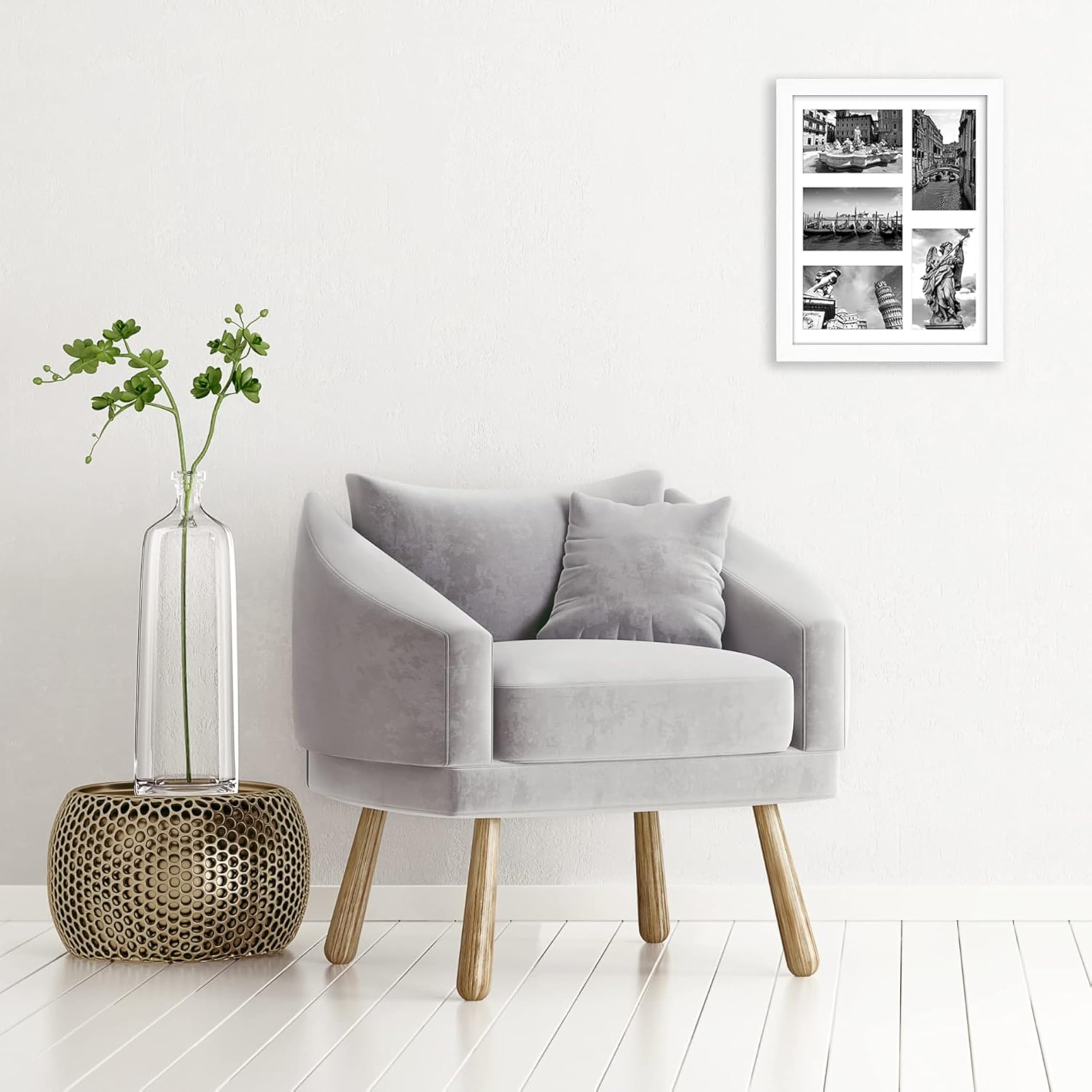 Americanflat Bilderrahmen Collage 10x15 cm Weiss - Bilderrahmen 28x36 cm mit Passepartout für Fünf 10x15 cm Fotos - Fotorahmen für Mehrere Bilder der Familie - Verbundholz mit Bruchsicherem Glas