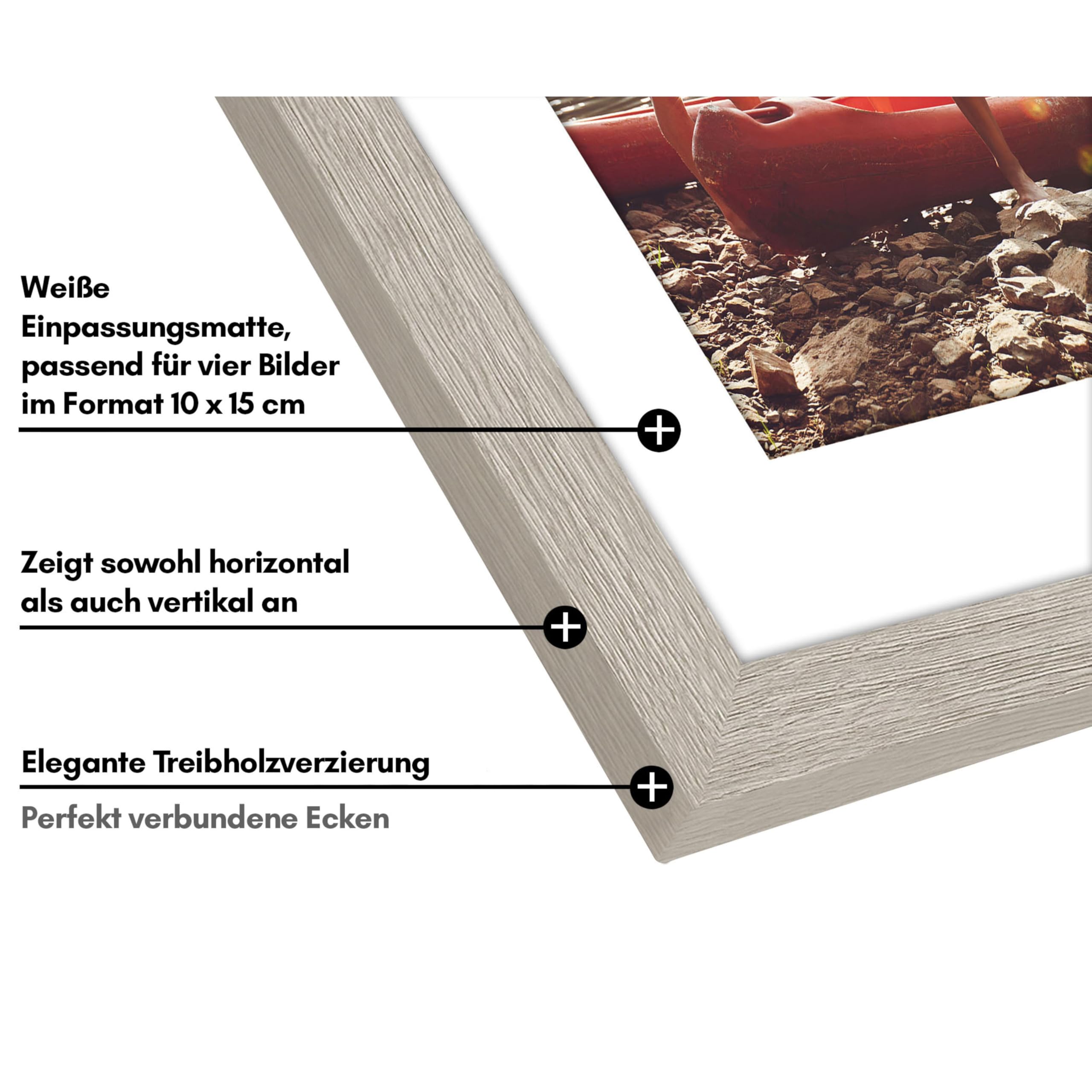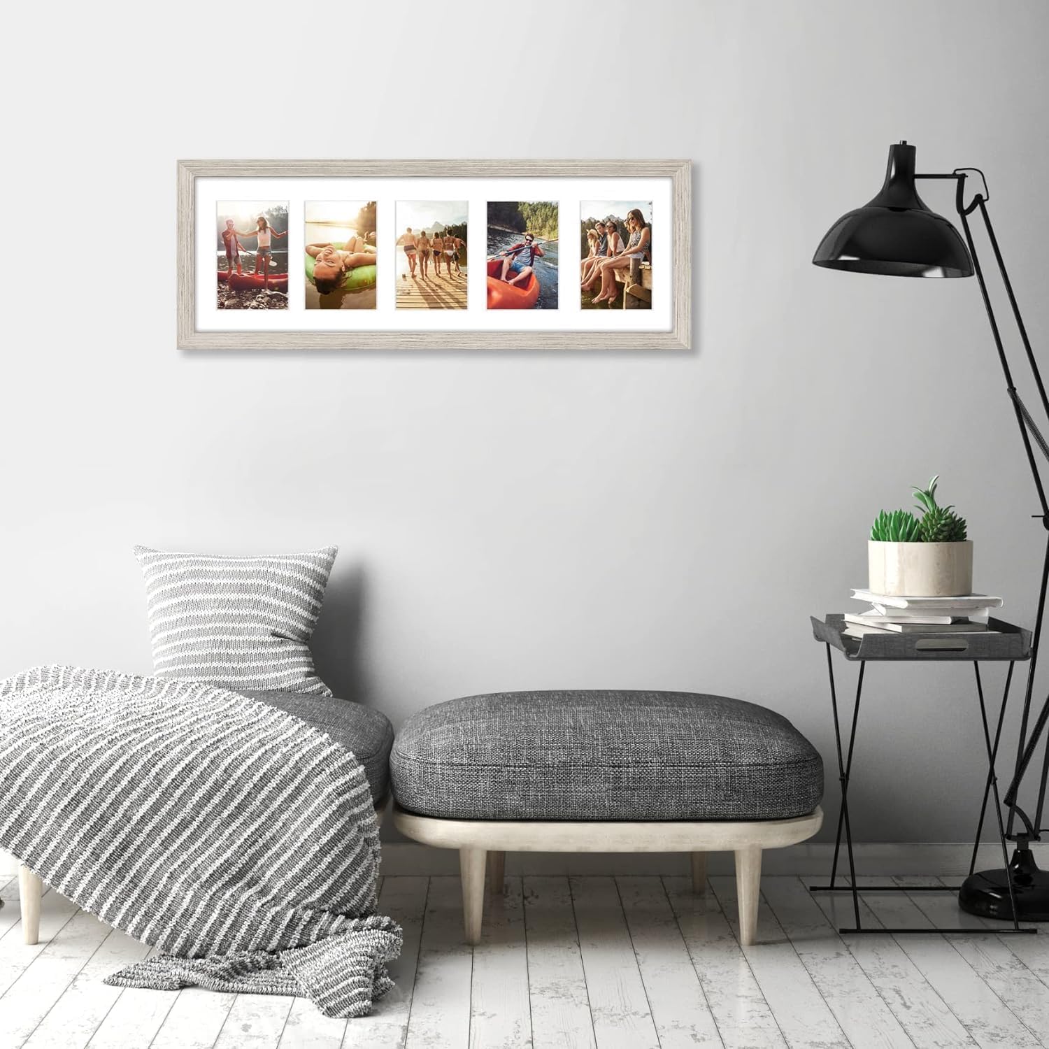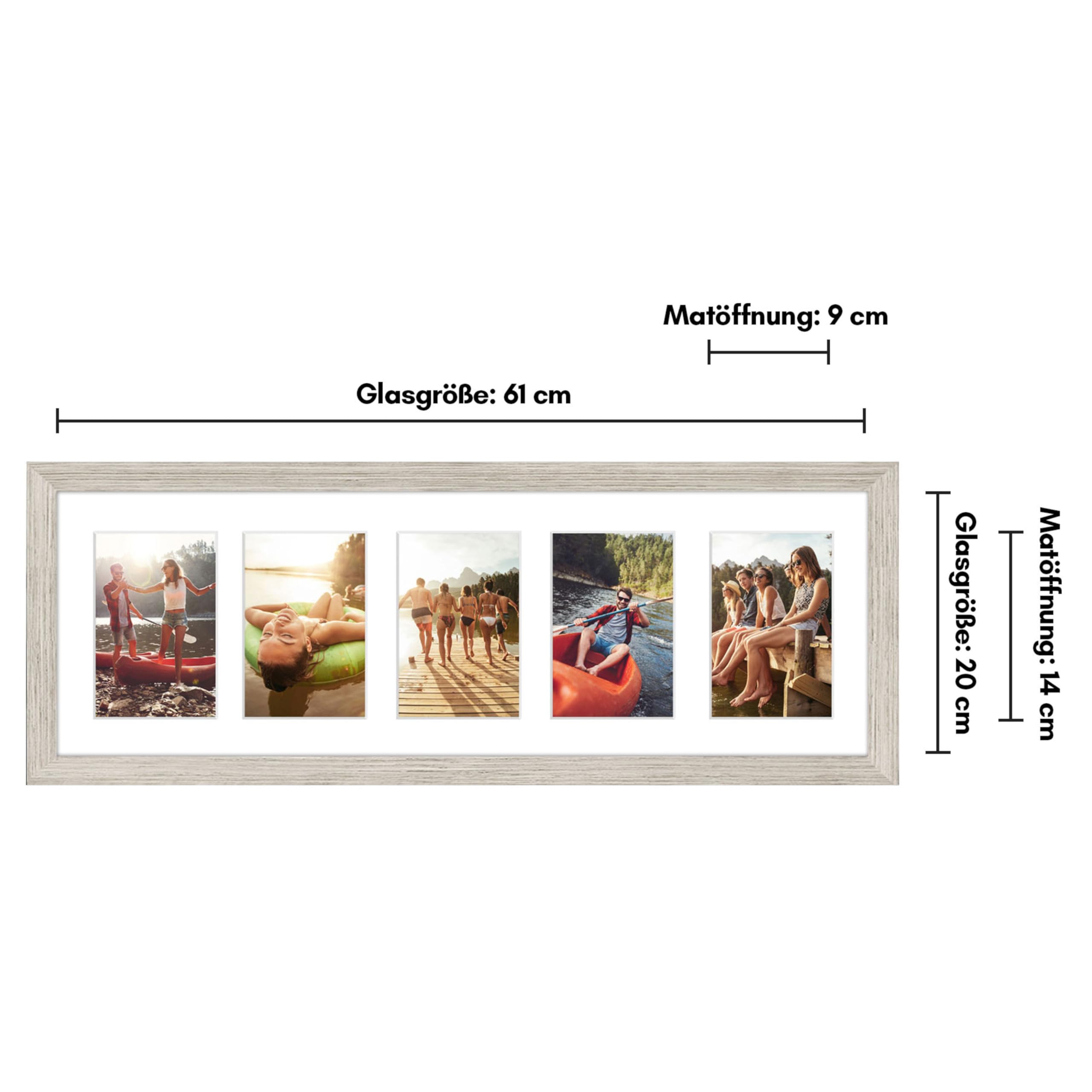 Americanflat Bilderrahmen Collage 10x15 cm Treibholz - Bilderrahmen 20x61 cm mit Passepartout für Fünf 10x15 cm Fotos - Fotorahmen für Mehrere Bilder der Familie - Verbundholz mit Bruchsicherem Glas