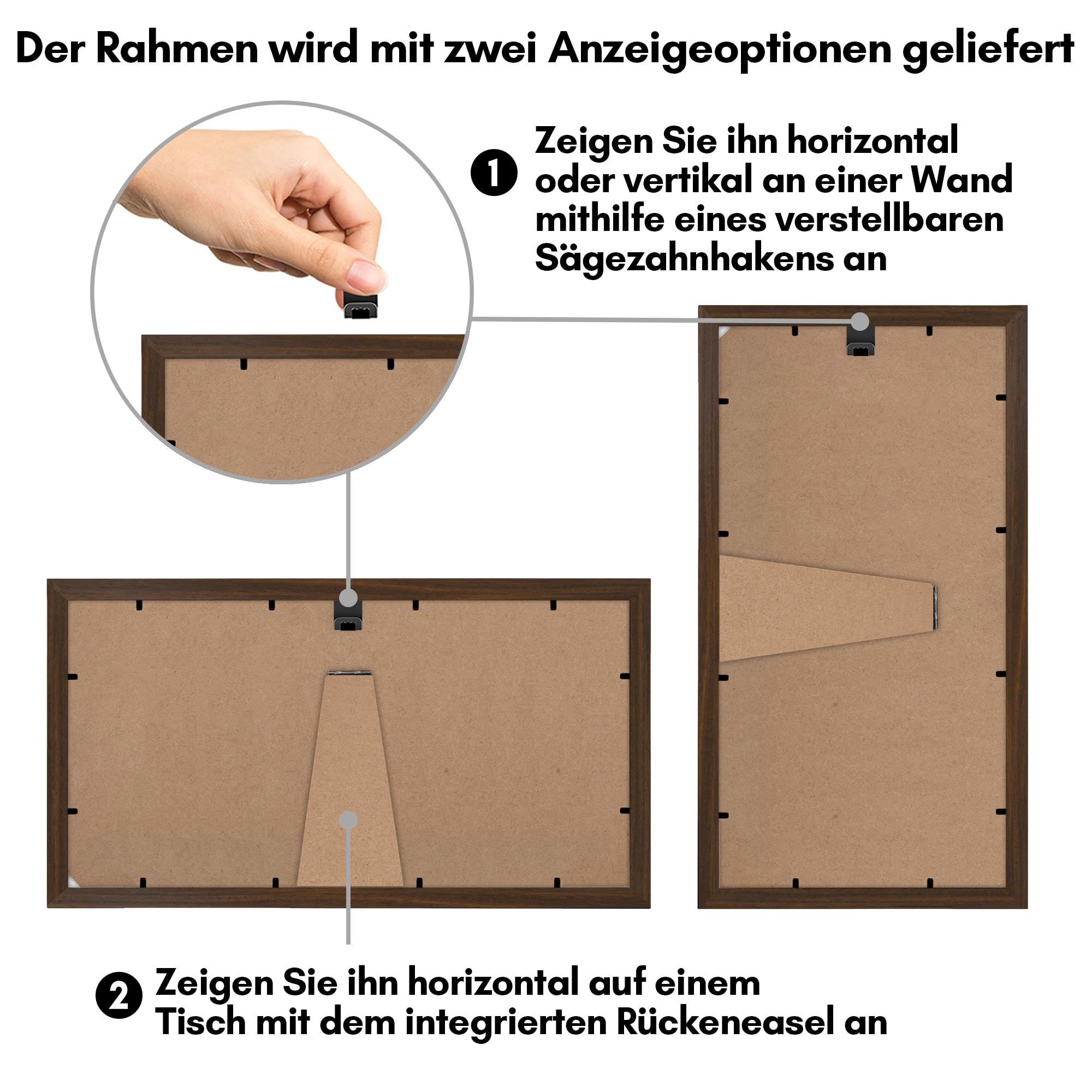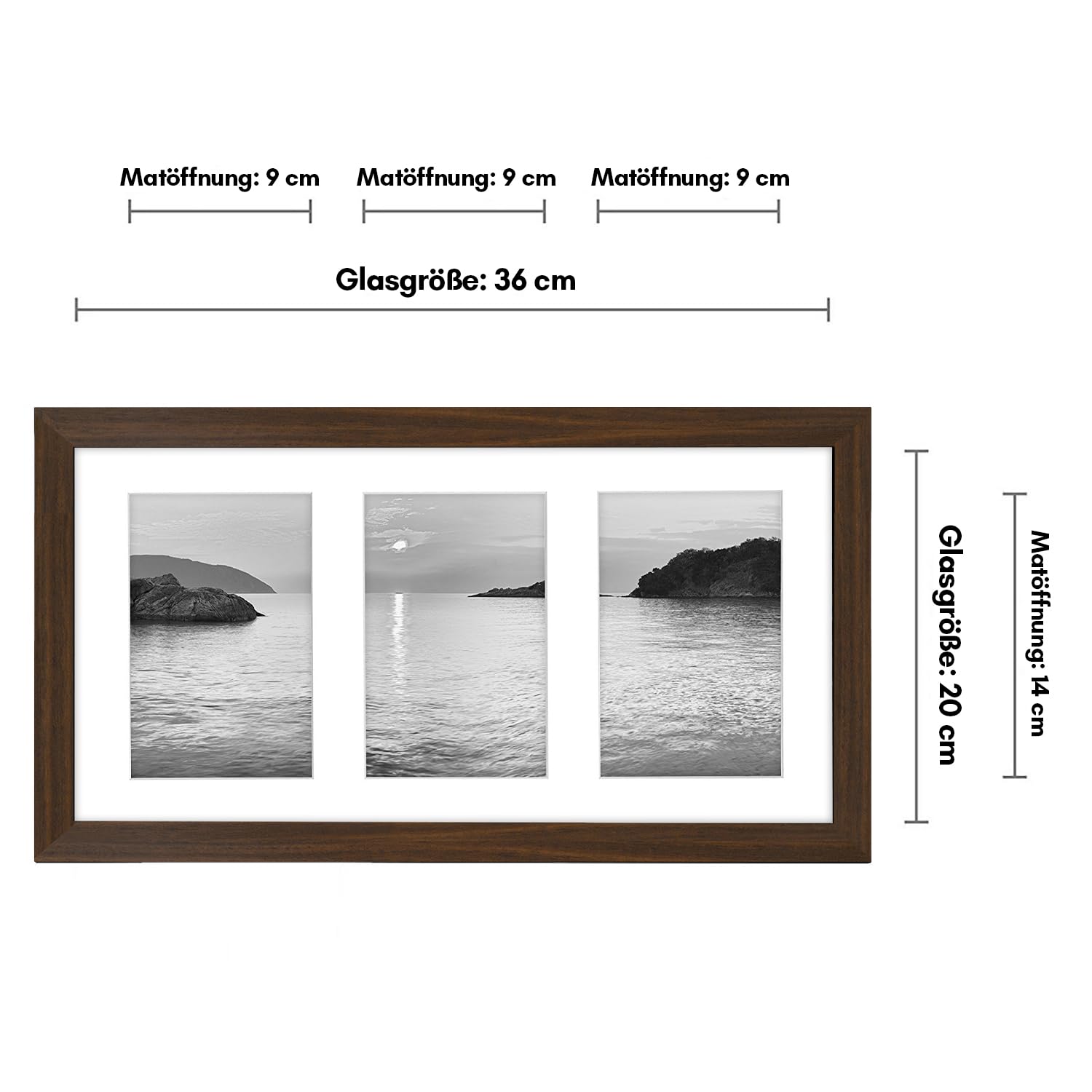 Americanflat Bilderrahmen Collage 10x15 cm Walnuss - Bilderrahmen 20x36 cm mit Passepartout für drei 13x18 cm Fotos - Fotorahmen für Mehrere Bilder der Familie - Verbundholz mit Bruchsicherem Glas