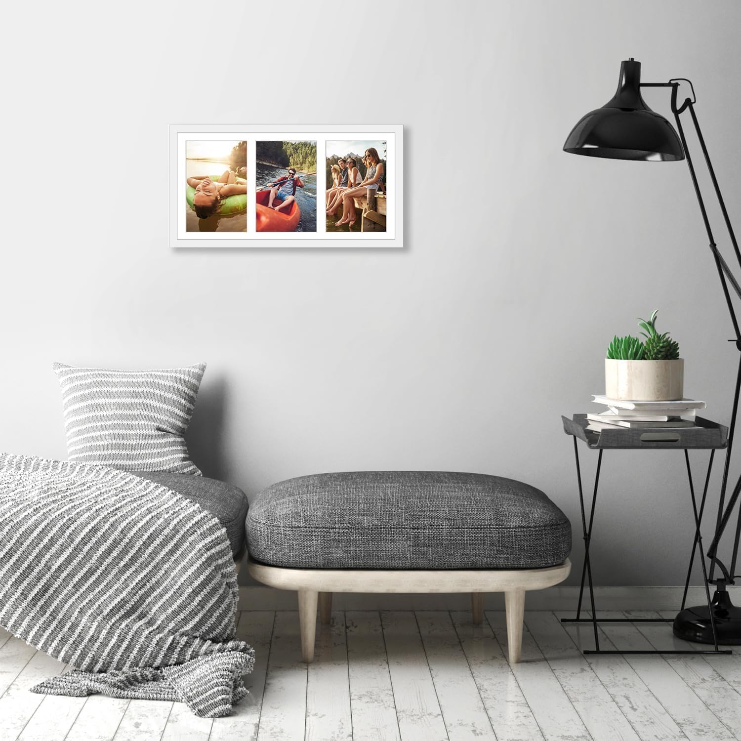 Americanflat Bilderrahmen Collage 13x18 cm Weiss - Bilderrahmen 20x41 cm mit Passepartout für drei 13x18 cm Fotos - Fotorahmen für Mehrere Bilder der Familie - Verbundholz mit Bruchsicherem Glas