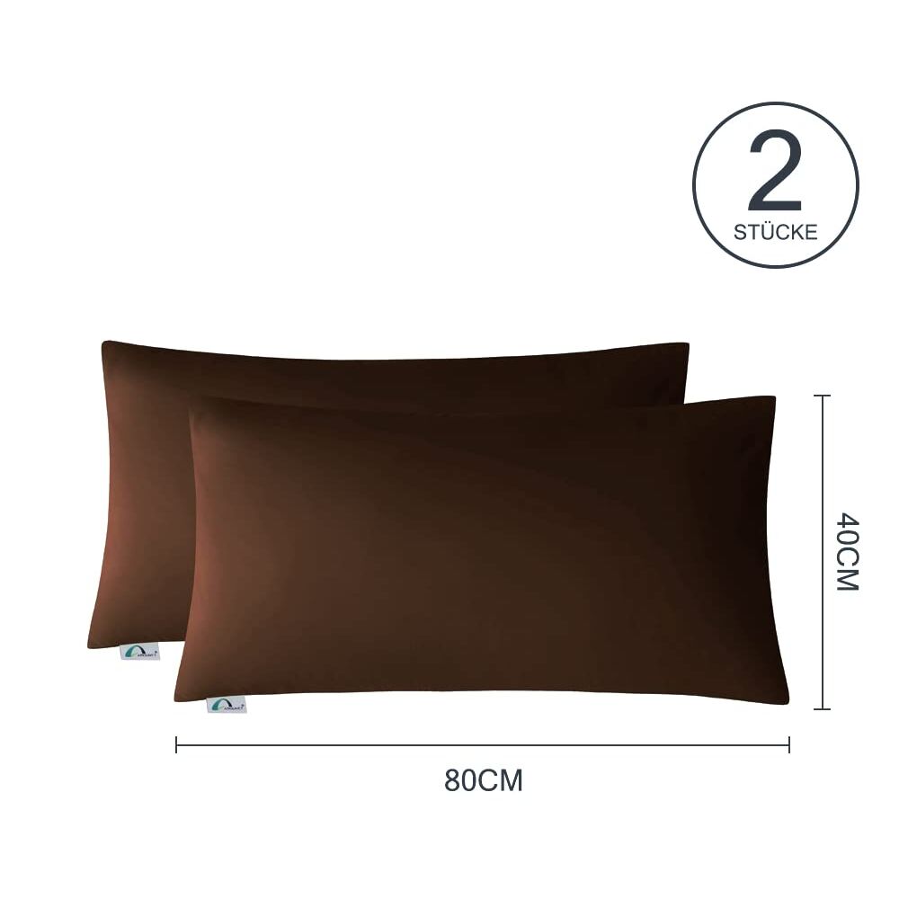 Amolavet Kissenbezug 40 x 80 Braun 2er Set Kopfkissenbezug 40x80 mit Hotelverschluss aus Gebürstetem Mikrofaser