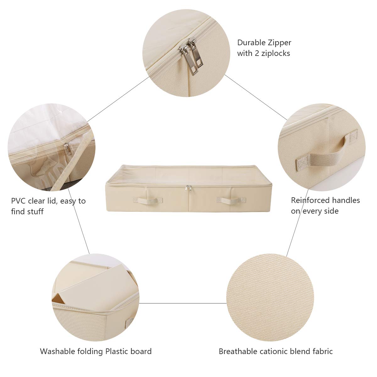 Amonsen 2er-Pack, geräumige, sichtbare PVC-Aufbewahrungsbehälter mit Deckel unter dem Bett für Schuhe, Decken und Bettzeug. Zusammenklappbar und waschbar. Beige