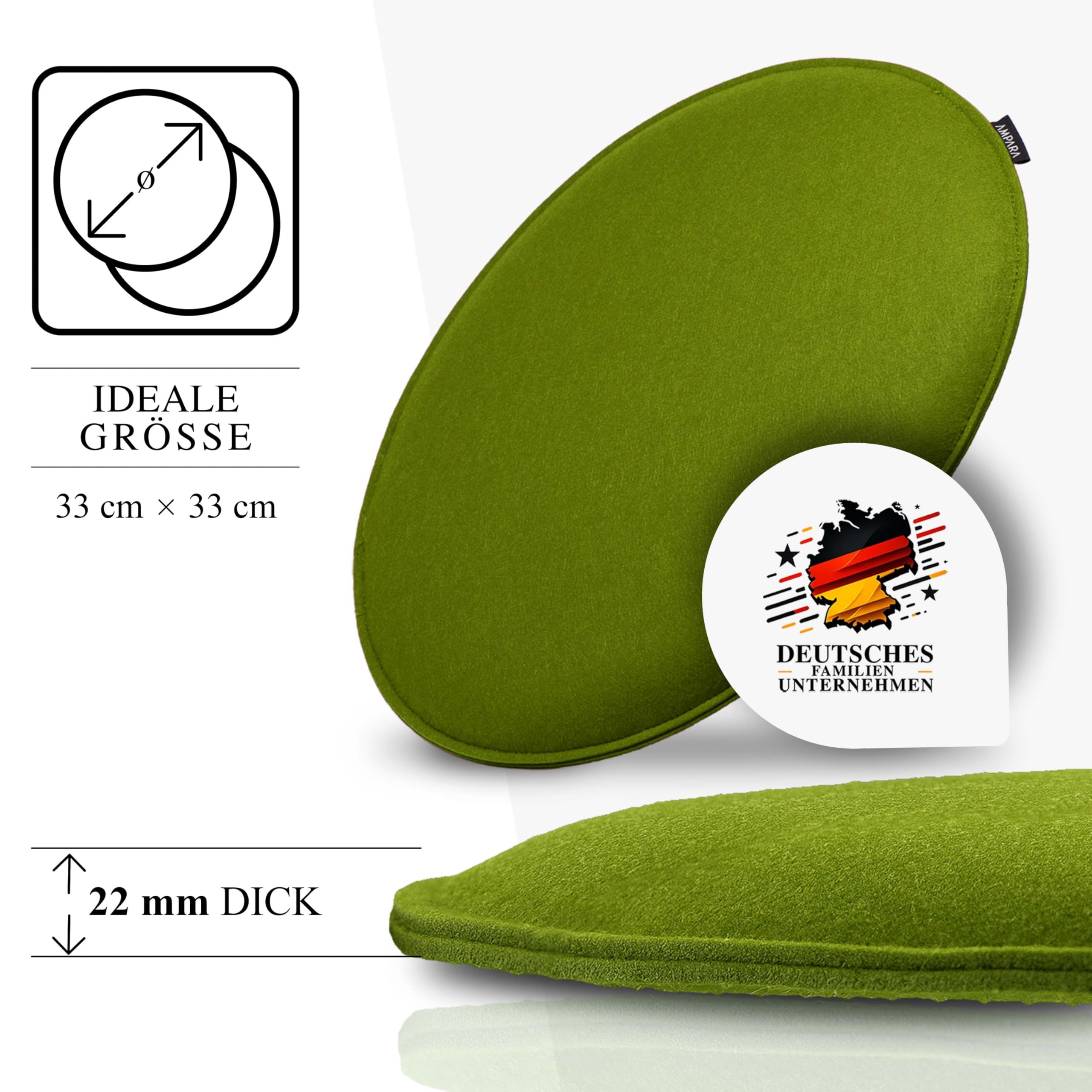 Ampara - 4er Set Stuhlkissen rund 33 cm - rutschfest & Gemütlich - Sitzkissen Filz rund | für Stuhl, Bank, Hocker etc. (grün)