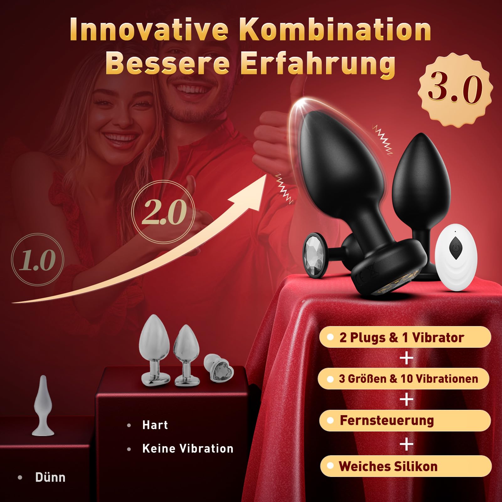 Tagnaff Analplugs 3-Set, Analplug# für Frauen Männer mit Vibration AI-Steuerung, Silikon Anal Plugs Butt Plug für den Mann Analvibratoren für Frau Buttplug Anfänger Anal Toys Sexspielzeug Butplug