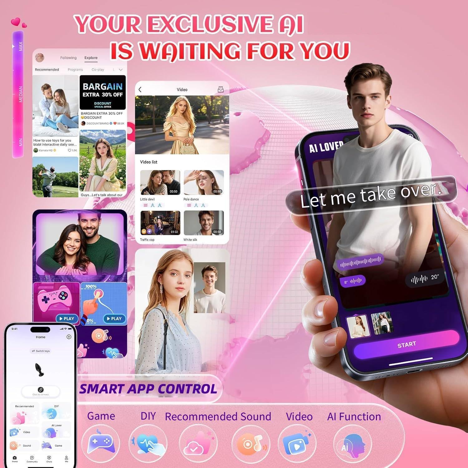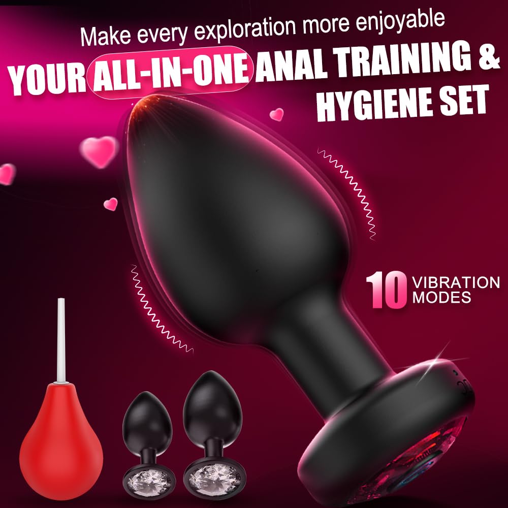 Analplugs 4-teilige Set mit Analdusche für Analverkehr - AI-Sync Dildo Vibrator mit App-Fernbedienung, 3 abgestuften Grössen Vielfältige Vibrationsmodi Anal Plug Set für Paare Männer Frauen Dildos