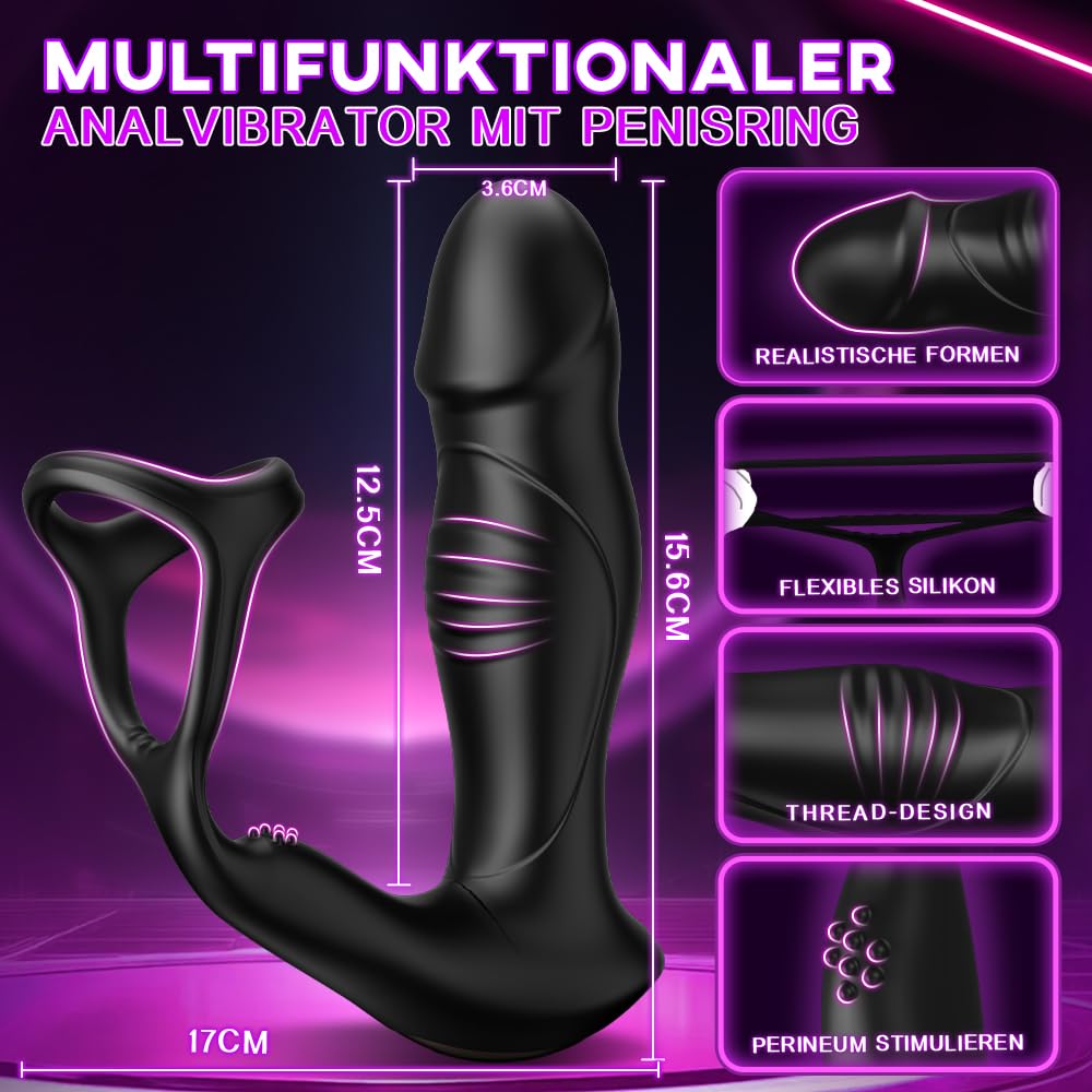 Analvibratoren für Mann Prostata Stimulation Männer mit Penisring 9 Schwungmodi & Rollkugeln-Stossfunktion 9 Vibrationen Analplug Sex Spielzeug für die Männer Anal Vibrator Anal dildo Sex toys