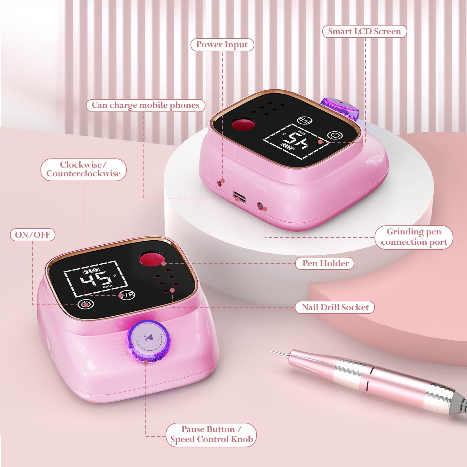 ANBEISTEE Professioneller Nagelfraeser 45000 U/min Elektrische Nagelfeile Rosa