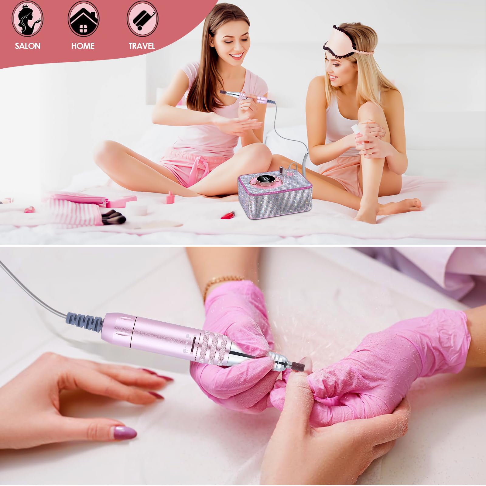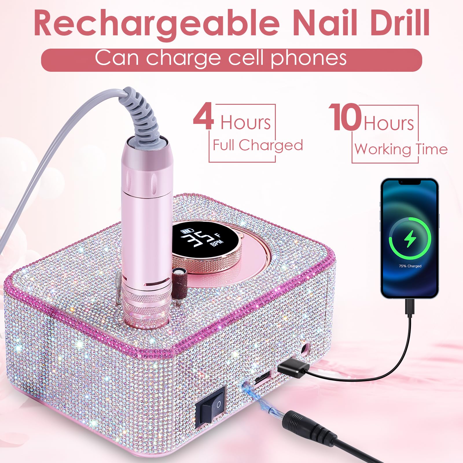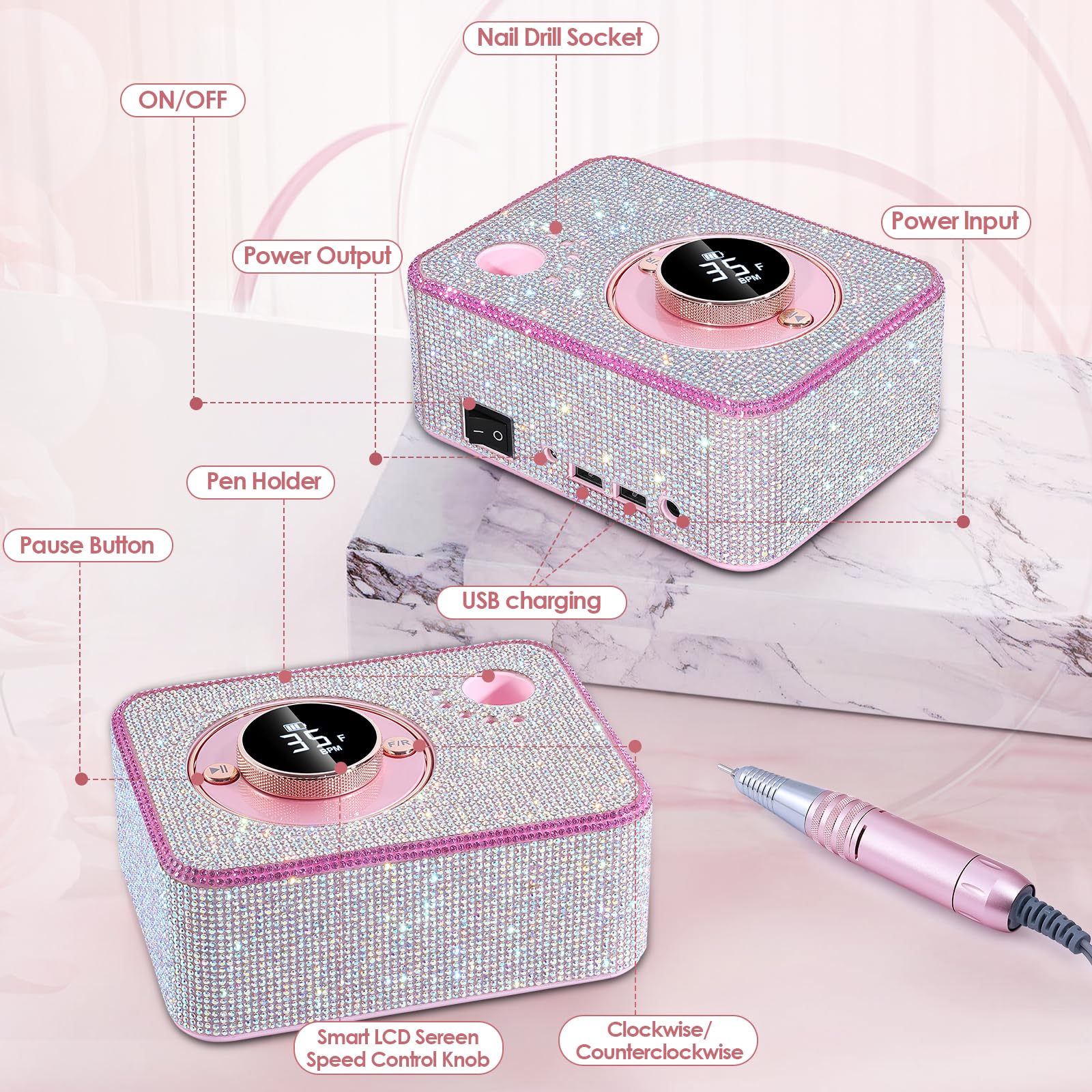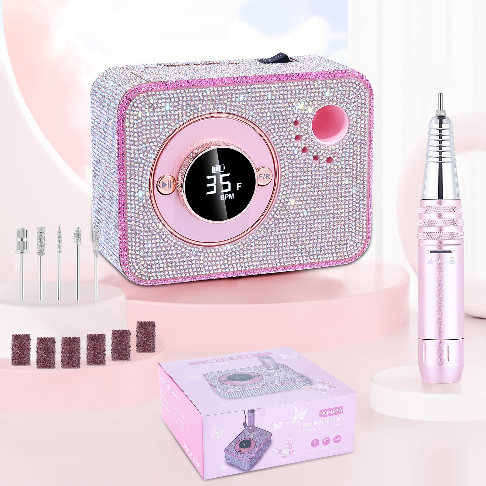 Diese wiederaufladbare elektrische Nagelfeile ist ein professionelles Werkzeug fuer Manikuere und Pedikuere. Sie eignet sich fuer Anfaenger und Nagelprofis und ist fuer den mobilen Einsatz sowie fuer den Arbeitsplatz zu Hause oder im Studio konzipiert.