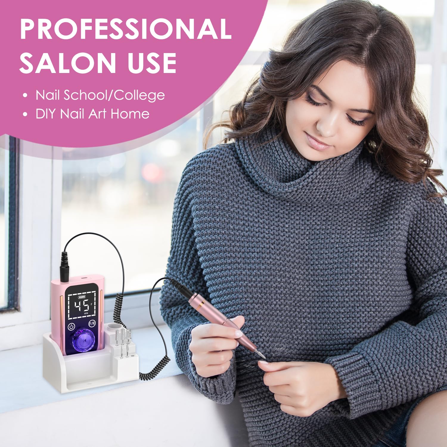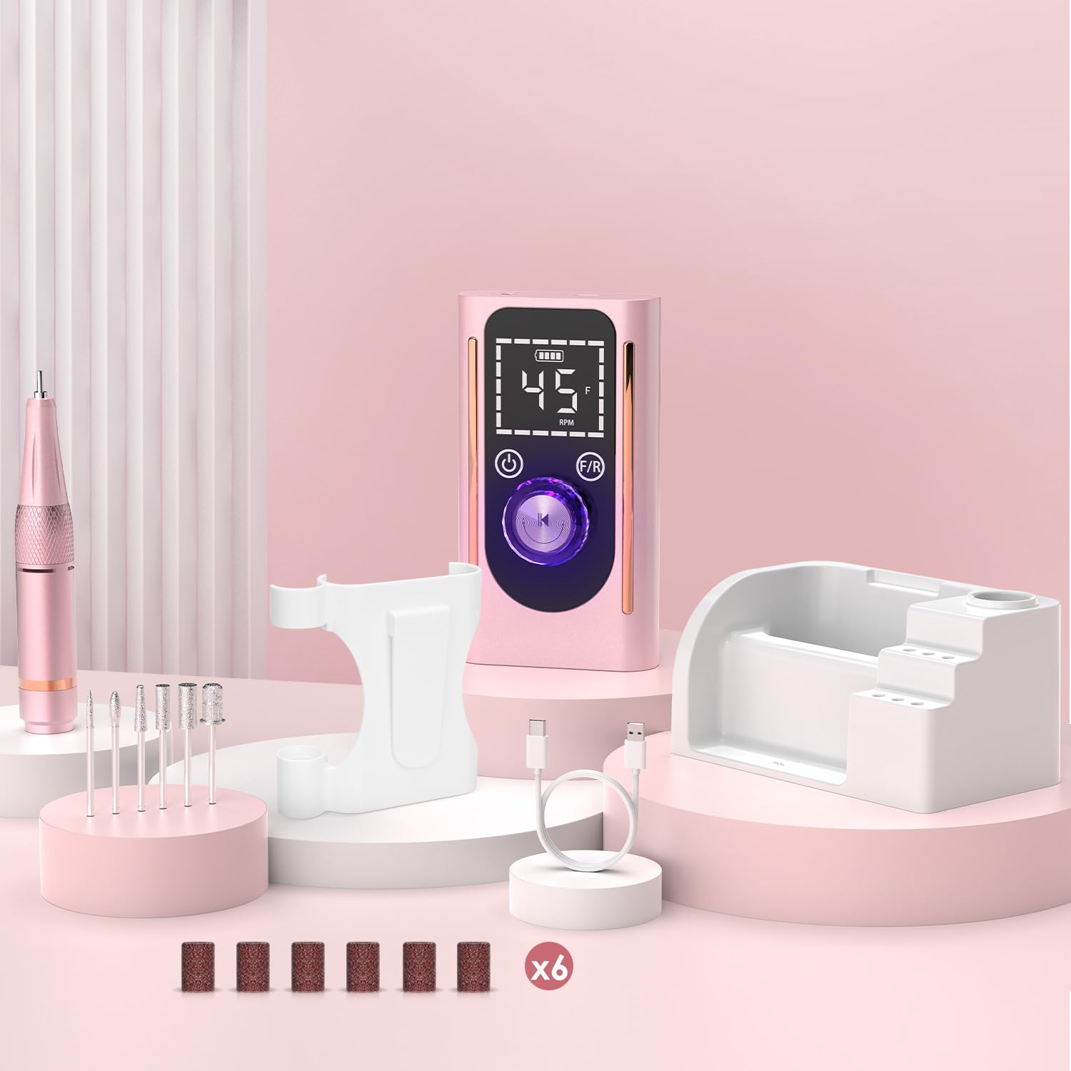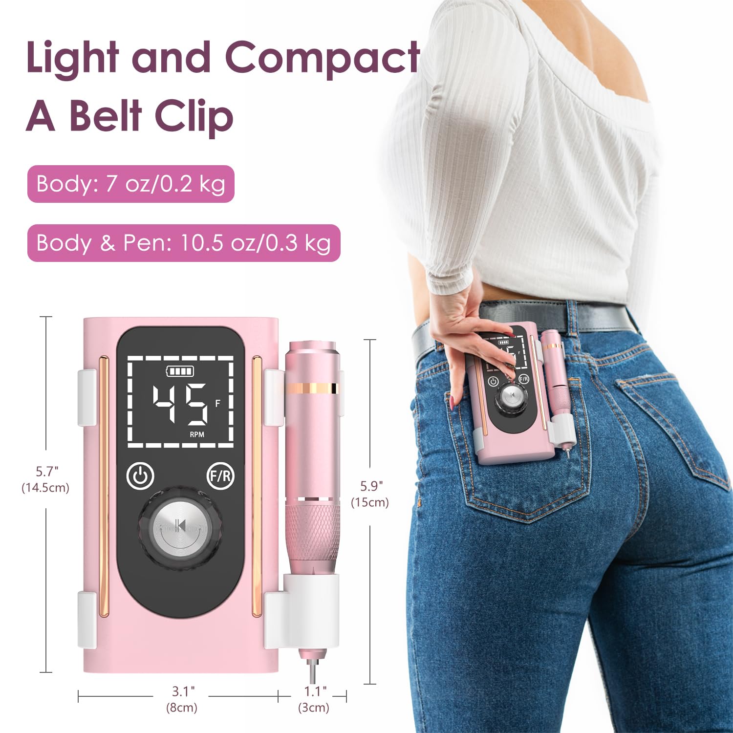 ANBEISTEE Kabelloser Nagelfraeser 45000 U/min Profi Efile mit LED Display Rosa
