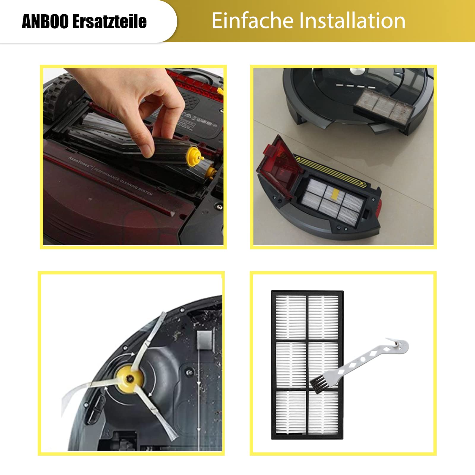 ANBOO Ersatzteile für iRobot Roomba 800 900 Serie, Bürsten Filter Ersatzteile für iRobot Roomba 860 865 866 870 871 875 876 880 886 896 960 966 971 976 980 981 Saugroboter