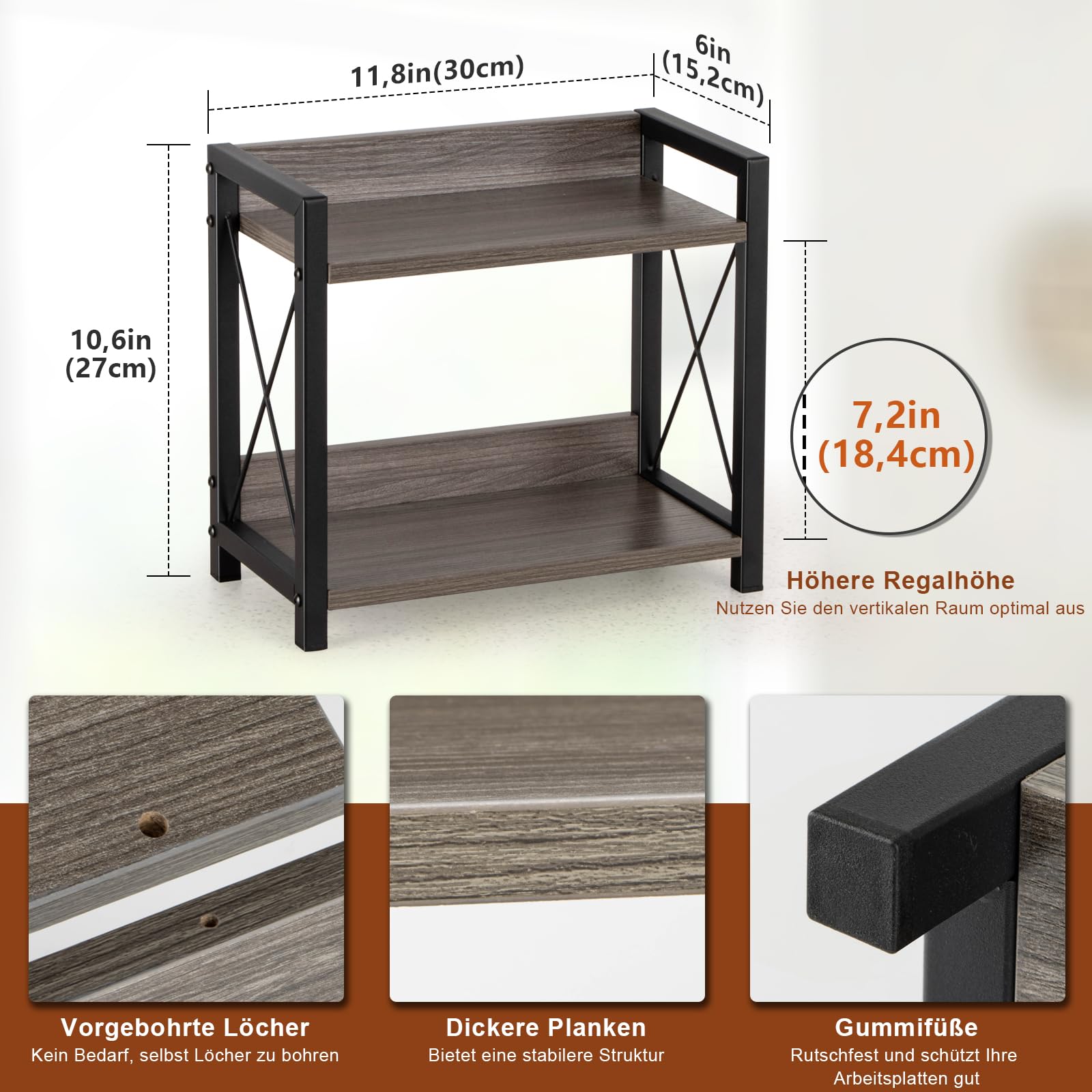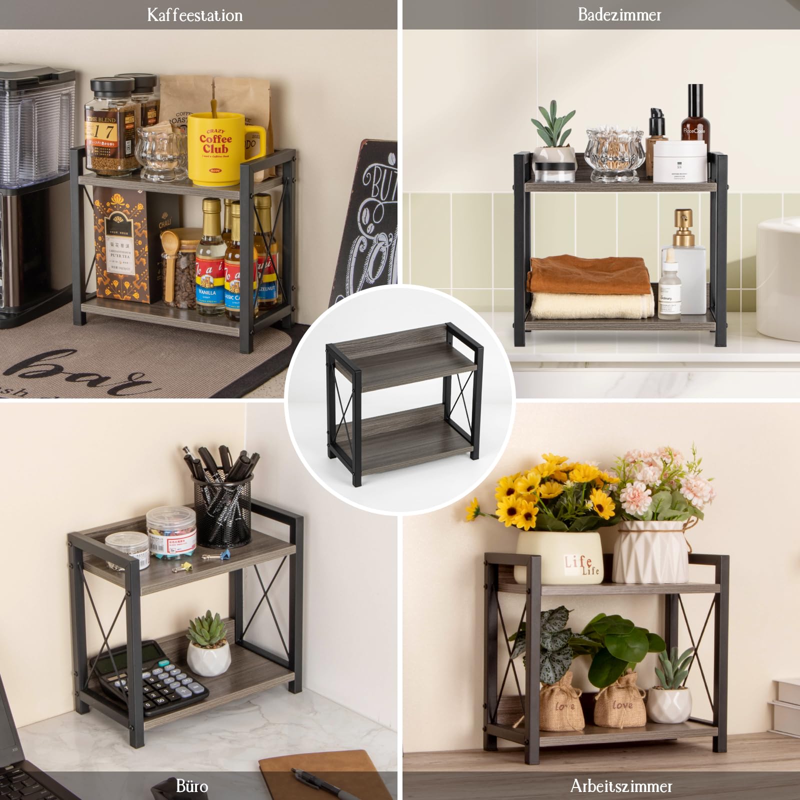 ANBOXIT Regal Küche Arbeitsplatte, Küchenregal Klein, Holz Kaffee Organizer, 2 Tier Kleines Regal für Küche Ecke, Büro, Badezimmer - Grau