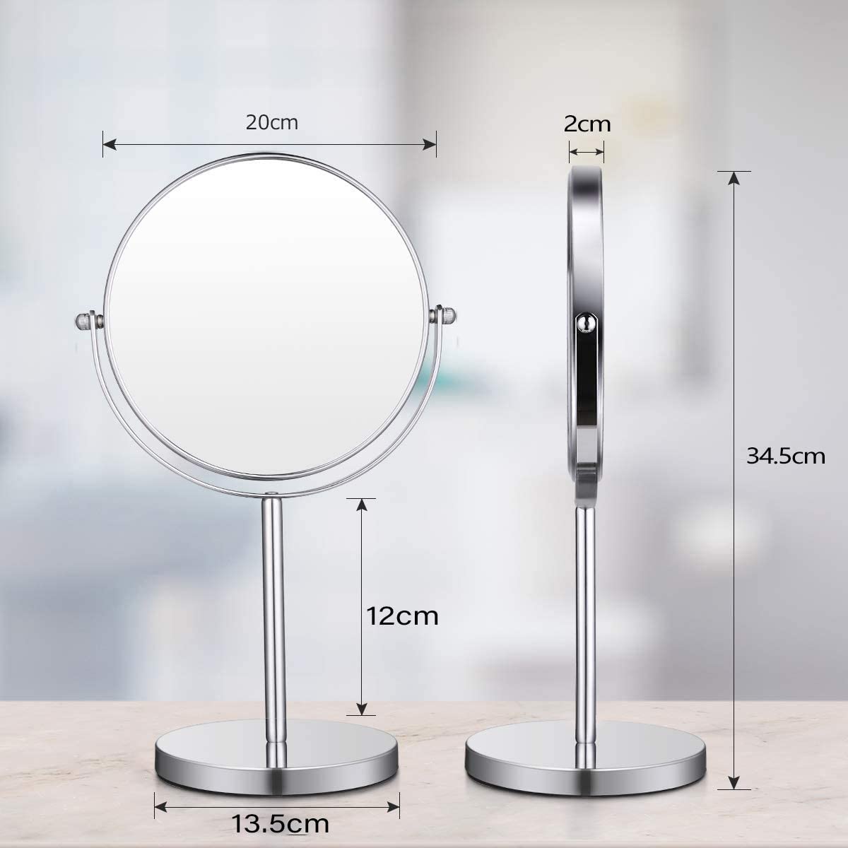 ANGNYA Kosmetikspiegel Tischspiegel mit doppelseitig 360° Schminkspiegel mit 1-/ 3 Facher Vergrösserung Schminkspiegel Rasierspiegel für Badezimmer Zuhause
