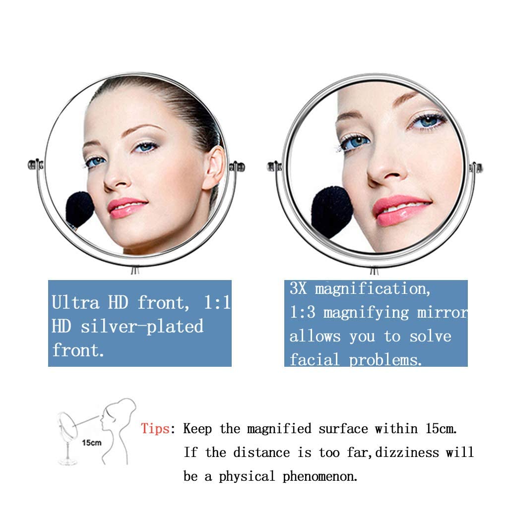 【Doppelseitige 3-fach Vergrösserung】1x / 3x Vergrösserung, zwei in einem Design Schminkspiegel , 1x reguläre Seite gibt Ihnen einen Überblick und 3x Vergrösserung, um sicherzustellen, dass jedes Detail Ihres Gesichts perfekt ist, was für Make-up, Gesichtsbehandlung, Rasur geeignet ist.