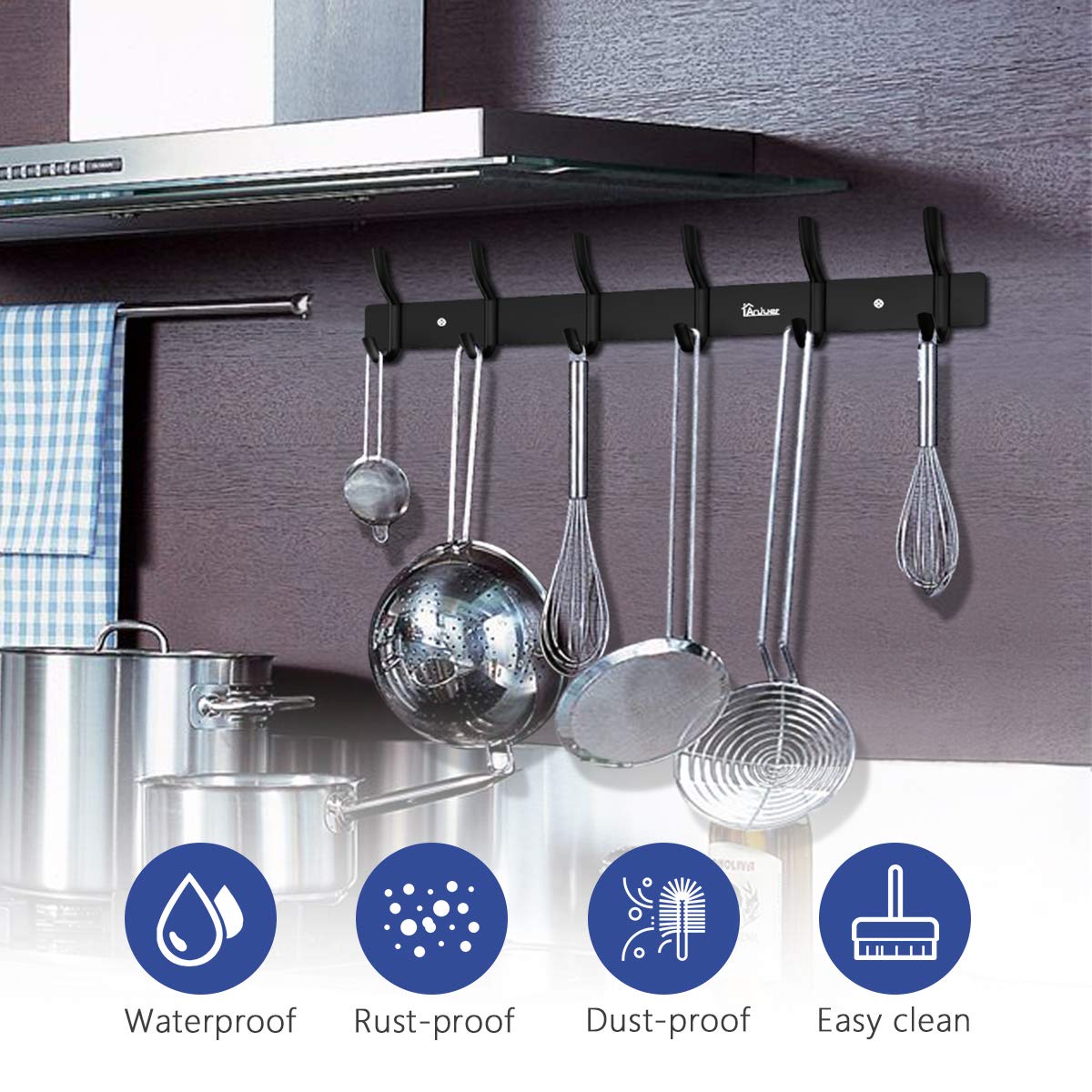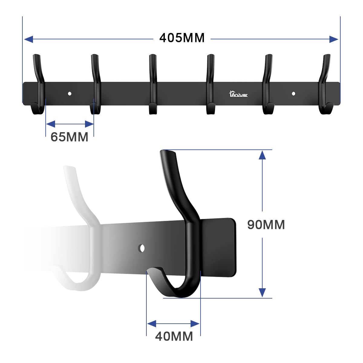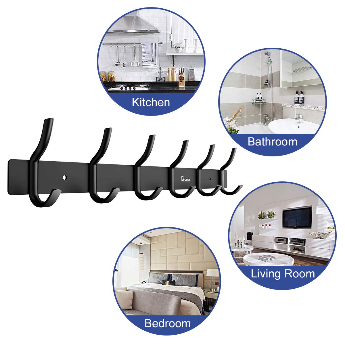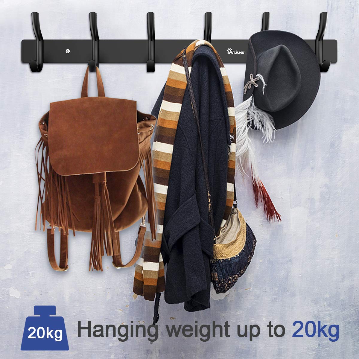 Anjuer Kleiderbügel, Kleiderständer, 6 Haken, strapazierfähig, Aluminiumlegierung, Schwarz
