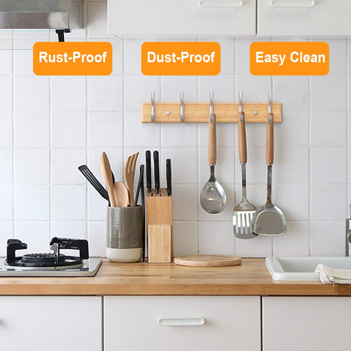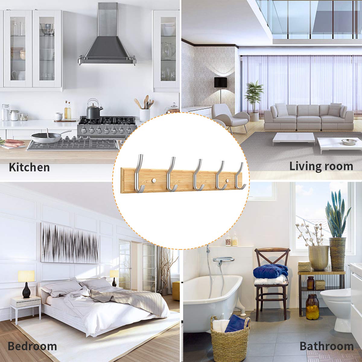 Hervorragende Verarbeitung und Langlebigkeit mit Bambusplatte und Haken aus Aluminiumlegierung.