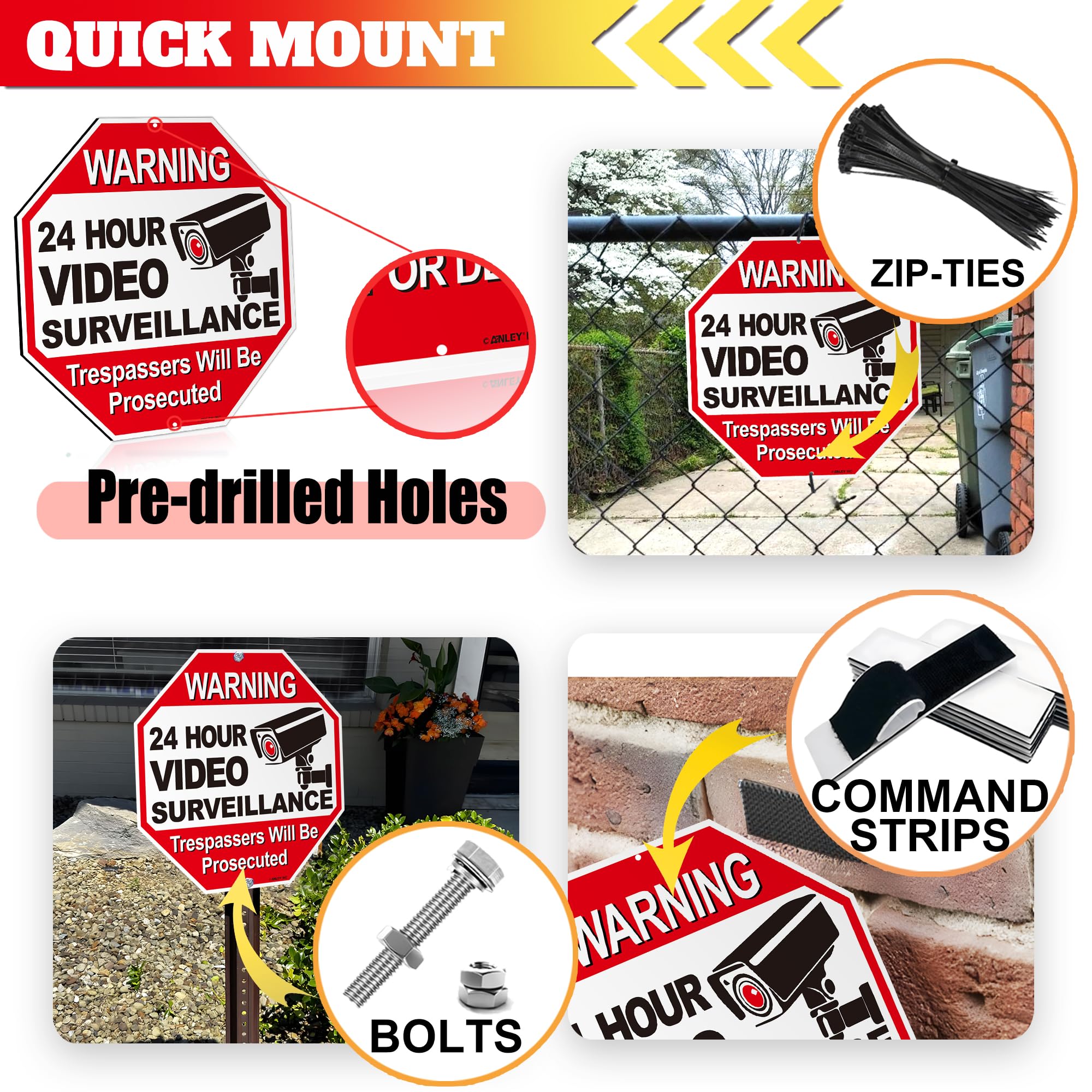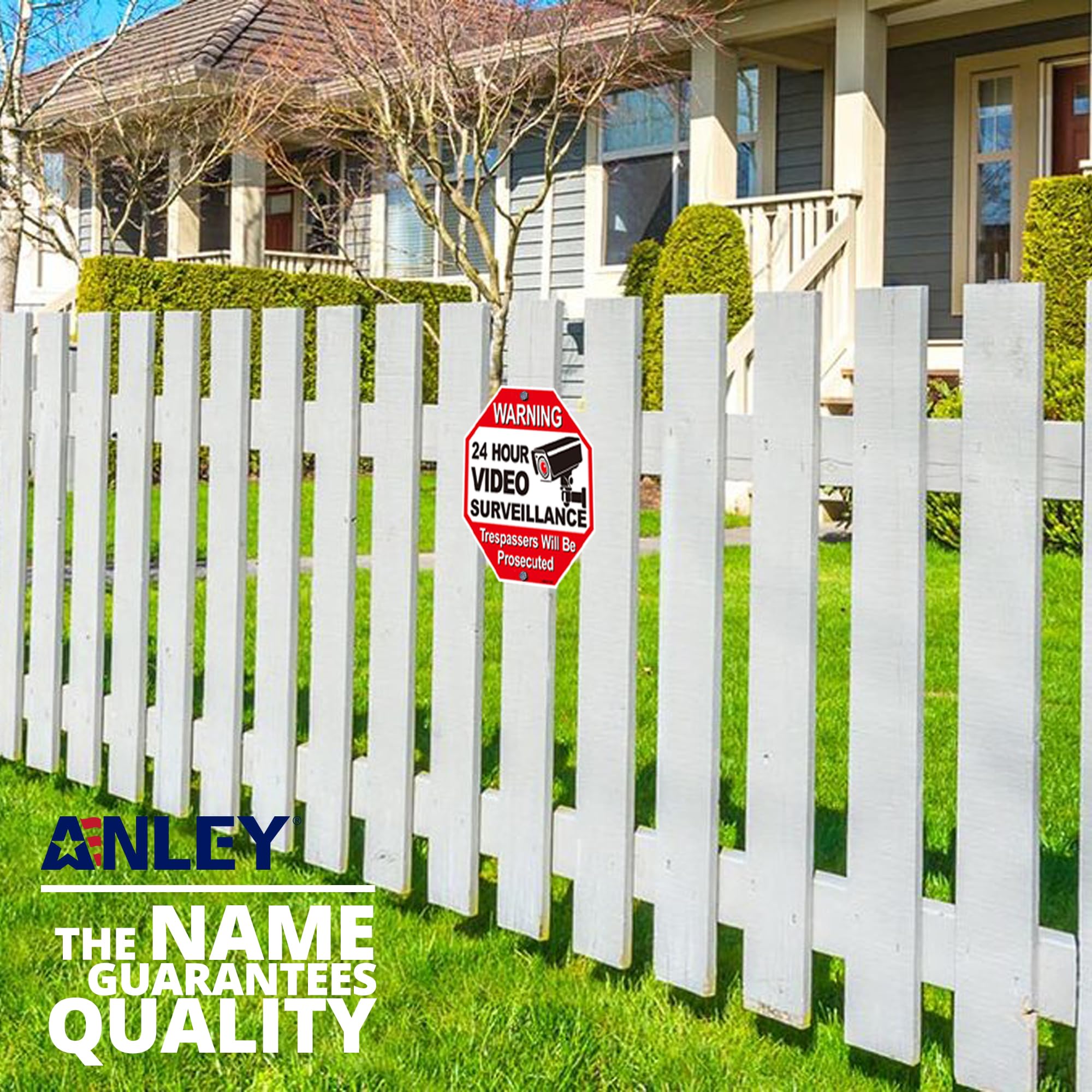 Anley 24-Stunden-Videoüberwachung Aluminium Warnschild Speziell gedruckte Tinte Der rot-weisse Hintergrund kann die Aufmerksamkeit in jedem Monitorbereich erregen, den Sie daran erinnern möchten. PREMIUM QUALITÄT – Das Warnschild besteht aus hochwertigem Aluminium, im Gegensatz zu Stahlschildern. Es ist langlebig und wetterfest. Geeignet für jeden Ort, den Sie aufhängen möchten. Einfach zu installieren – Das ANLEY-Warnschild ist einfacher zu handhaben, es gibt 2 vorgebohrte Löcher für eine schnelle und einfache Installation. Bietet eine sichere Umgebung – das Warnschild kann Ihnen grosse Ruhe geben. Grosse, kräftige und kontrastreiche Farbe ist auf Entfernung sichtbar. Grösse: 30,5 x 30,5 cm.